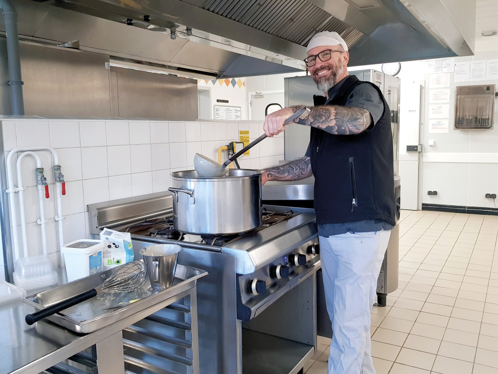 « Ici on cuit, on rôtit, on frit, on prépare sauces et sautés … Tout est fait à la main ! », souligne, non sans fierté, François, un des employés de la cuisine centrale. Près de lui, ses collègues mijotent une sauce aux câpres ou tranchent du Saint-Nectaire. Chaque matin, dès 6h30, l’équipe est aux fourneaux sous la houlette de Stéphane, le chef de cuisine. Exit les idées reçues sur les cantines, ici, on travaille comme dans un restaurant. A un détail près : il y a 1 350 repas à livrer ! Ainsi, les plats sont préparés la veille, hors weekend, puis stockés en chambres froides. Ils sont ensuite réchauffés dans les établissements. « Nous accordons une très grande importance à la qualité et à l’origine des denrées utilisées », tient à rappeler Dominique Morin, maire-adjointe en charge de l’éducation. Ainsi, plus de 90% des aliments sont français, dont l’intégralité de la viande. « Chaque année, nous faisons en sorte d’augmenter la part de produits issus de l’agriculture biologique ou des circuits courts, aujourd’hui nous avoisinons les 50%. » Certaines denrées proviennent d’exploitations locales comme les laitages de la Ferme des Peupliers, basée à Flipou, les lentilles récoltées à Merey ou le pain, fourni par la boulangerie vernonnaise Au Péché Véniel. Et, bien sûr, tout est de saison.