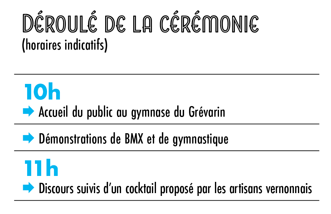VD174-focus-derouleA Vernon, la flamme qui anime l’équipe municipale depuis dix ans brûle toujours. Et elle s’attise au contact des habitants. C’est pourquoi François Ouzilleau, maire de Vernon, et les élus sont particulièrement attachés à la cérémonie des vœux. « Pour nous, il s’agit d’un point d’étape qui, au-delà de la convivialité, nous permet de rencontrer les Vernonnais et d’annoncer les grands projets de l’année à venir », confie le premier édile. Trois lettres marqueront l’édition 2024 de cette cérémonie : JOP. « Les jeux olympiques et paralympiques de Paris sont, bien évidemment, le moment fort de cette année ! » C’est pourquoi, lors de cet événement, les habitants pourront assister à deux animations sportives : une démonstration de BMX freestyle sur scène ainsi qu’une chorégraphie de gymnastique par les athlètes de l’Avenir de Vernon. Place ensuite aux discours en présence de Sébastien Lecornu, ministre des Armées. « Pendant mon allocution, j’aurai l’honneur de dévoiler l’habillage graphique que Vernon utilisera à l’occasion des jeux olympiques et du passage de la flamme sur notre territoire, le 6 juillet », ajoute François Ouzilleau. Il sera également question du lancement de la Team 2024, un groupe de bénévoles chargés d’appuyer la ville lors des manifestations en lien avec les jeux.