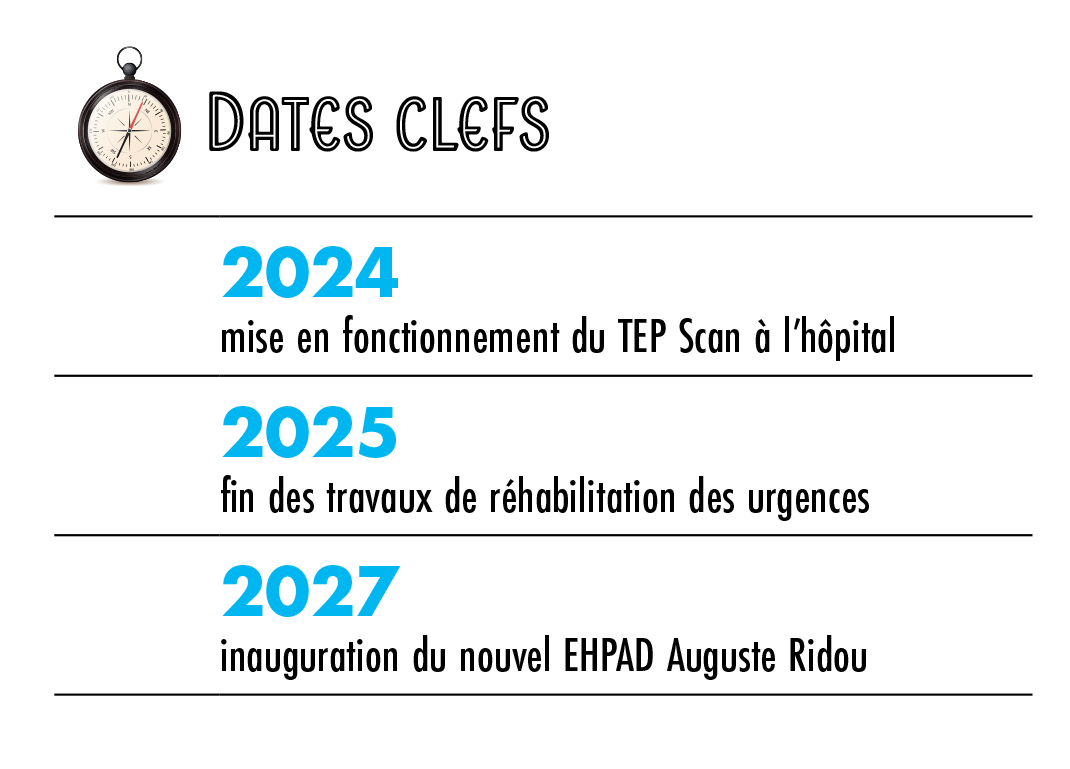 Le premier est la réhabilitation tant attendue des urgences. Avec 25 000 passages l’an dernier, les locaux ne sont plus du tout adaptés aujourd’hui. Ce chantier, prévu pour 2024, vise à libérer 250 m² afin de créer un vrai parcours de soin. Cette nouvelle gestion des flux permettra de diminuer le temps d’attente des patients. L’autre projet d’envergure est l’extension et la rénovation de l’EHPAD Auguste Ridou. Nous avons fait le choix de garder son emplacement mais c’est un établissement à la pointe qui ouvrira ses portes en 2027. Le projet médico-soignant est actuellement en pleine élaboration et intègrera la télémédecine, la stimulation multisensorielle Snoezelen ou encore des espaces de convivialité et de services.
