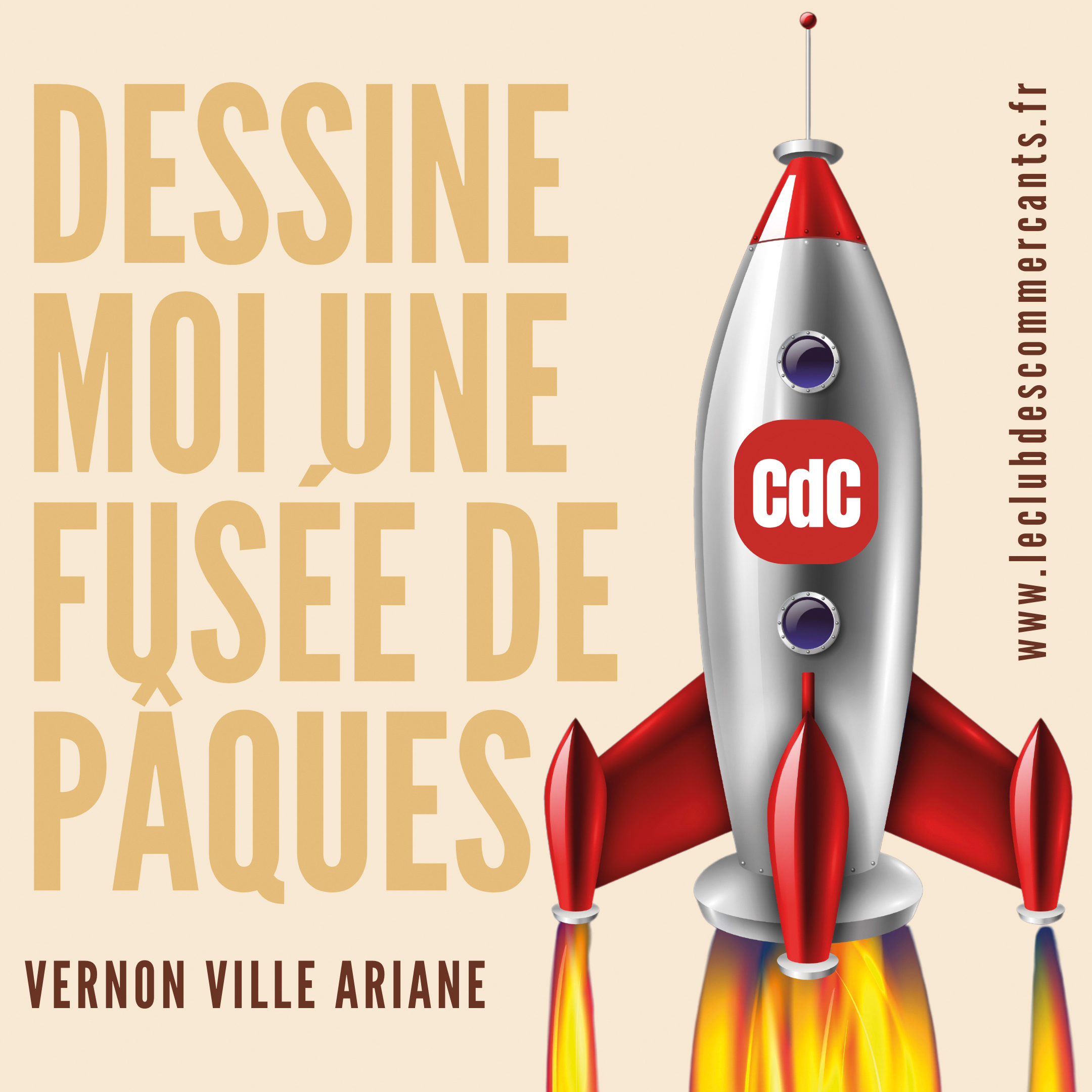 Pour célébrer Pâques, le Club des Commerçants (CDC) vous propose un jeu-concours dédié aux enfants de 2 à 11 ans inclus, sur la thématique Vernon Ville Ariane 2023 : « Dessine-moi une fusée de Pâques » (du 8 au 30 avril inclus). Les meilleurs talents par catégories remporteront un chèque cadeau d’une valeur de 50€ ! Pour participer, il vous suffit simplement de remettre, chez votre commerçant préféré, votre plus beau dessin en respectant le thème imposé. Joyeuses Pâques avec le CDC ! Et n’oubliez pas : acheter en ville n’est pas anodin ! C’est faire vivre nos commerces, conforter nos emplois locaux, développer nos liens sociaux et participer à la dynamique de notre belle ville de Vernon.