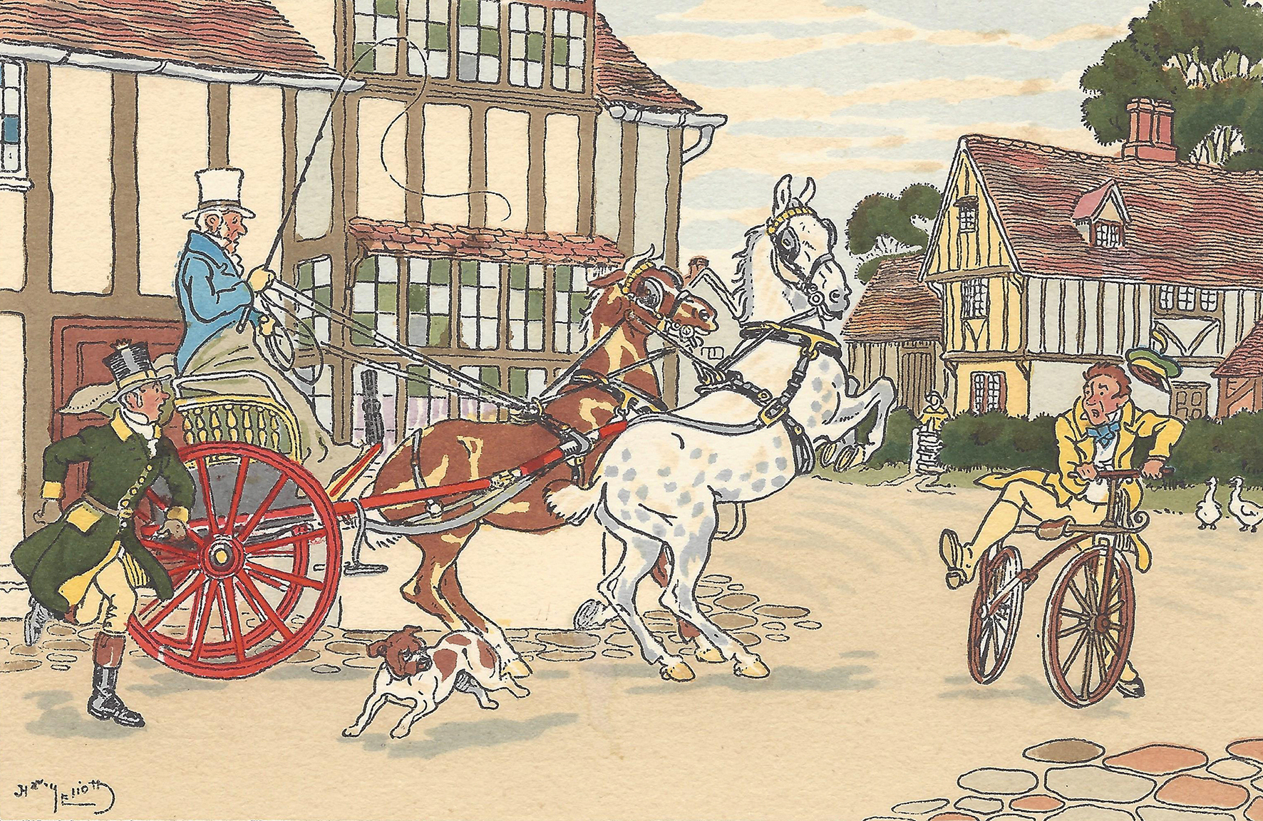 Chevaux, charrettes, vélos et premières automobiles, les véhicules occupent une place importante chez Harry Eliott.