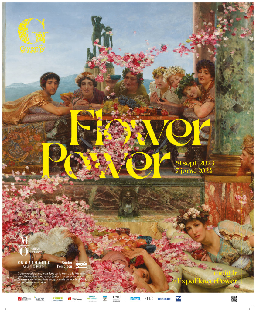 D’Ovide aux hippies en passant par Baudelaire, Monet ou Caillebotte, les fleurs infusent l’histoire de l’art. Mais, au-delà de l’esthétique, que symbolisent-elles ? Et, surtout, quel meilleur lieu que Giverny pour répondre à cette question ? Jusqu’au 7 janvier et pour sa troisième ouverture hivernale, le MDIG présente Flower Power, une plongée interdisciplinaire dans l’histoire des fleurs. Présentée au Kunsthalle de Munich d’août à février, l’exposition fait escale au MDIG dans une version ajustée et enrichie d’une importante section consacrée à l’impressionnisme. « Avec 120 œuvres présentées, Flower Power est riche et fourmille de détails », souligne Cyrille Sciama, directeur du musée et commissaire de l’exposition, « elle reste néanmoins très accessible pour le grand public. » A travers une mise en scène soignée, ce dernier peut déambuler entre des statues égyptiennes, de la porcelaine de Sèvres, des toiles de maîtres ou des robes d’Yves Saint-Laurent. Avec de nombreux prêts venus de France et de l’étranger, Flower Power fait la part belle aux artistes stars : Monet, Renoir, Warhol ou encore Georgia O’Keeffe. « Tous ces artistes ont interprété le sujet floral à leur manière », poursuit le directeur, « comme disait Matisse, les fleurs sont partout pour qui veut bien les voir. » Certaines pièces sont rarement exposées, à l’image des « Roses d’Héliogabale » (1888), toile maîtresse de Lawrence Alma-Tadema où l’on voit cet empereur d’une Rome décadente noyer ses convives sous une pluie de pétales. « Dans ce tableau, on s’aperçoit du caractère ambigu des fleurs, c’est cette symbolique qu’explore Flower Power à travers l’art, l’histoire ou la religion. » Si les iris, les roses et les œillets sont parmi les variétés les plus représentées, le visiteur trouvera, dans le jardin du MDIG, de magnifiques camélias, dahlias et autres chrysanthèmes plantés pour l’occasion. « Notre ambition est bien de faire fleurir Giverny jusqu’à l’hiver ! », conclut Cyrille Sciama.