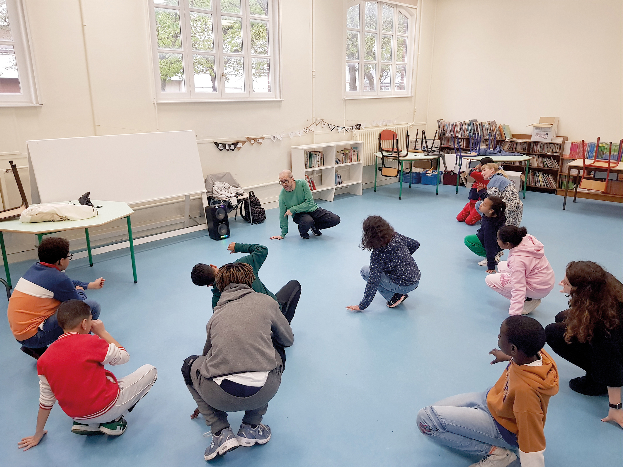 Au rythme de la musique, les différences s’effacent. A l’école du Centre, une classe de CM2 s’entraîne avec ses camarades du dispositif ULIS (Unité localisée pour l’inclusion scolaire). Devant eux, Mohamed El Hajoui, membre de la compagnie 6e Dimension, spécialisée dans le hip-hop. Le danseur enseigne aux enfants une chorégraphie à raison de quatre séances d’une heure. Parallèlement, il intervient à l’école Pierre Bonnard de Vernonnet auprès de CM1/CM2 et de CE2. Objectif : préparer un spectacle qui sera ultérieurement présenté au public vernonnais. Mais ces ateliers, financés à 100% par la municipalité, visent surtout l’inclusion des élèves porteurs de handicap et une meilleure cohésion au sein des deux écoles. « Le hip-hop est une culture que les enfants connaissent, ça leur parle et, souvent, les participants restent ensemble même après la séance », témoigne Agathe Lesueur, institutrice ULIS à l’école du Centre. Afin de poursuivre l’exploration de la galaxie hip-hop par les écoliers, le dispositif est complété par des ateliers d’écriture rap/slam.