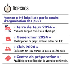 VD176-focus-reperesA Vernon, 2024 s’écrivait déjà en 2019. Cinq ans avant les jeux olympiques et paralympiques (JOP), la municipalité s’échauffait déjà en obtenant la labellisation « Terre de Jeux 2024 ». Autant dire qu’aujourd’hui, la ville est dans les starting-blocks ! « Cette année sera sport », confirme le maire, François Ouzilleau, « pour accompagner la dynamique des JOP, des événements gratuits seront proposés tous les mois jusqu’à la fin des jeux. » La programmation débute dès le 16 mars avec une édition 100% breakdance de La Danse Dans Tous Ses Etats. « Nous démarrons les festivités en consacrant notre gala annuel à cette discipline qui fait son entrée aux jeux olympiques à Paris. » De nombreux sports seront à l’honneur lors des semaines précédant l’ouverture des JOP. Parmi eux, la course à pied (Vernon Tout Court), le cyclisme (Tour de l’Eure) ou bien le skateboard (Vernon Skate Contest). « Nous souhaitons mobiliser l’ensemble des habitants, au premier rang desquels les associations sportives. » Un grand nombre de clubs ont ainsi répondu présent et participeront à des démonstrations au stade lors de la Journée olympique (23 juin) et du Village des Sports (26 juillet au 11 août). Les particuliers pourront, quant à eux, donner un peu de leur temps en s’inscrivant à la Team 2024. Cette équipe regroupera des bénévoles qui prêteront main forte lors des différents événements. Les enfants ne seront pas en reste. Labellisée « Génération 2024 », la municipalité propose un riche programme sportif à destination des scolaires.