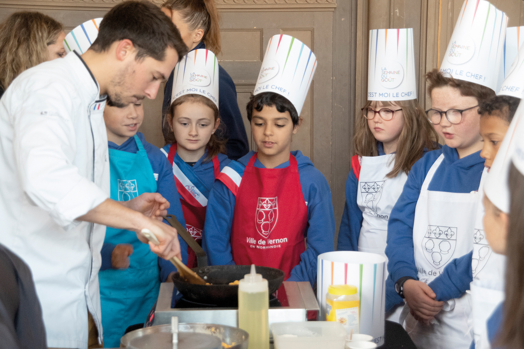 Depuis 33 ans, la Semaine du Goût réunit professionnels et grand public autour de la thématique du bien-manger. Un événement national qui met en lumière les restaurateurs, les producteurs locaux, les commerces de bouche et les organismes de santé. Dans ce cadre, les 20 membres du conseil municipal des enfants (CME) ont été invités à mettre la main à la pâte. Le 12 octobre dernier, les petits conseillers, encadrés par Benjamin Revel, le chef de La Musardière (Giverny), ont fait le marché et réalisé une délicieuse recette de pancakes de courges aux pommes et aux épices. Parallèlement, des menus spéciaux ont été servis aux élèves de primaire afin de leur faire découvrir la richesse de notre patrimoine culinaire.