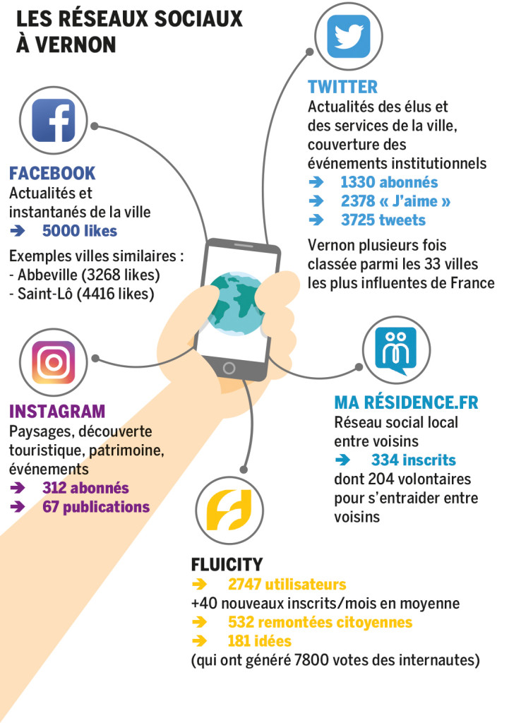 À en croire les chiffres, et compte tenu du nombre de ses habitants, Vernon est très bien positionnée dans le palmarès des villes sur les réseaux sociaux, qu’il s’agisse de Facebook, Twitter ou Instagram. « Plusieurs fois déjà cette année, Vernon a fait partie des 33 villes les plus influentes de France sur Twitter. Mais au-delà de l’aspect quantitatif, nous sommes surtout performants en « engagement », ce qui correspond au nombre d’interactions générées. Cela reflète la qualité et la pertinence des messages portés à nos concitoyens » précise François Ouzilleau, maire de Vernon. « Dans cette optique, nous allons vers davantage de vidéos et de directs sur nos réseaux, comme nous l’avons fait sur Twitter lors du dernier conseil municipal. »