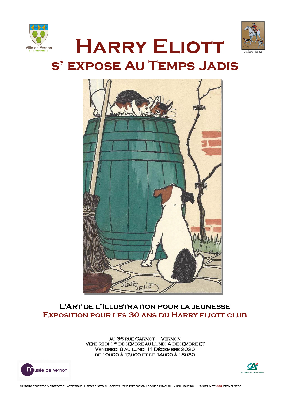 Cette association regroupe des passionnés de Harry Eliott (1882-1959), le plus anglais des illustrateurs normands. Pour célébrer son anniversaire, le Club exposera des œuvres de l’artiste, qui vécut près de Vernon, à la Maison du Temps Jadis (8 au 11 décembre). Thématique : l’illustration jeunesse. Les enfants sont les bienvenus à cette exposition gratuite afin de découvrir le travail sensible et drôle d’Eliott, fortement influencé par l’imagerie victorienne.