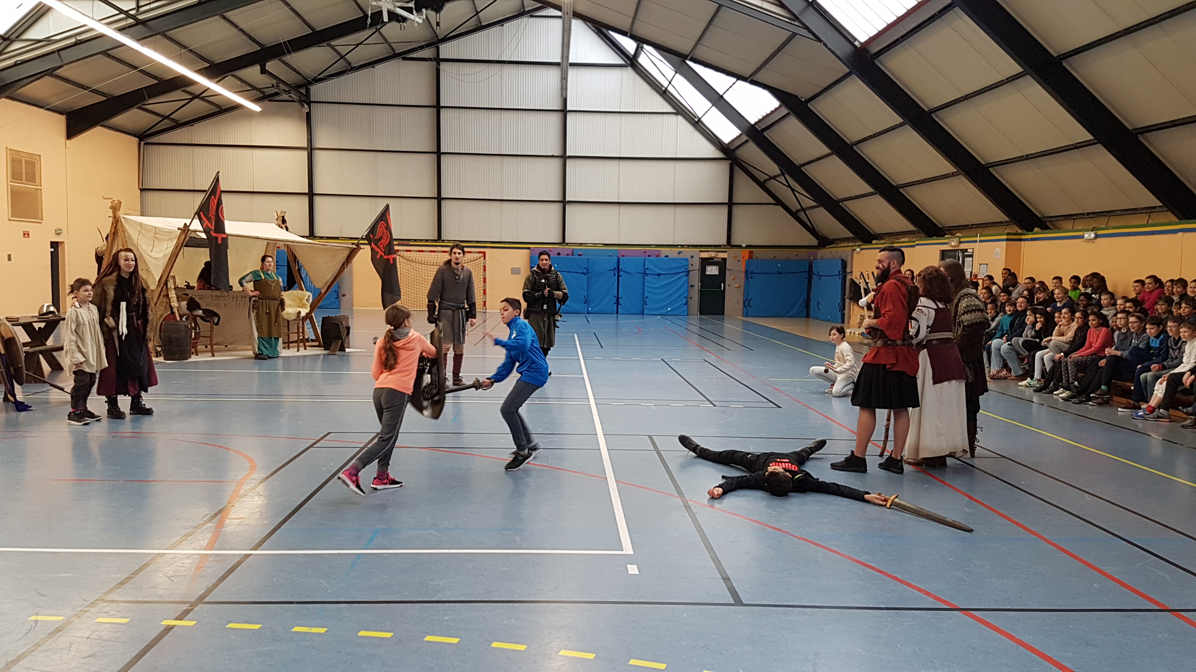 En parallèle, le gymnase était occupé par un village viking reconstitué par la « confrérie du Dragon Blanc ». Au programme : mise en scène des combats et initiation à l’escrime ; le maniement des armes s’avérant parfois être une réelle prouesse technique.