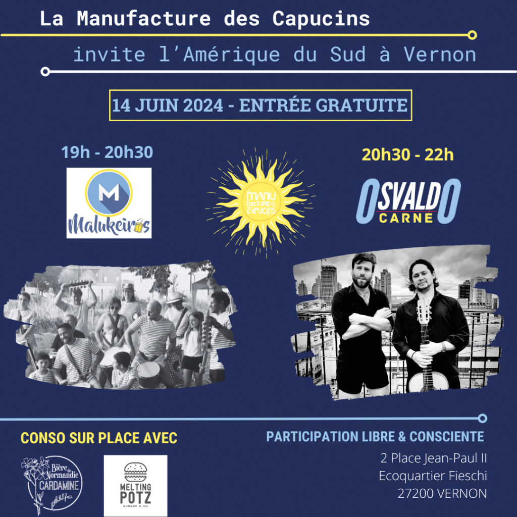 Vendredi 14 juin à partir de 19h, venez vous endiabler les neurones et les oreilles à la Manufacture des Capucins ! Profitez avec nous des concerts de la batucada des Malukeiros et des mélodies sud-américaines envoûtantes d’Osvaldo Carné. Venez également découvrir, avec Les Shifters, une conférence immersive et inspirante sur le climat pour verdir facilement votre quotidien. Ces soirées sont 100% gratuites et rien que pour vous !