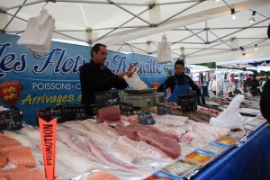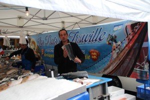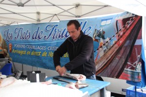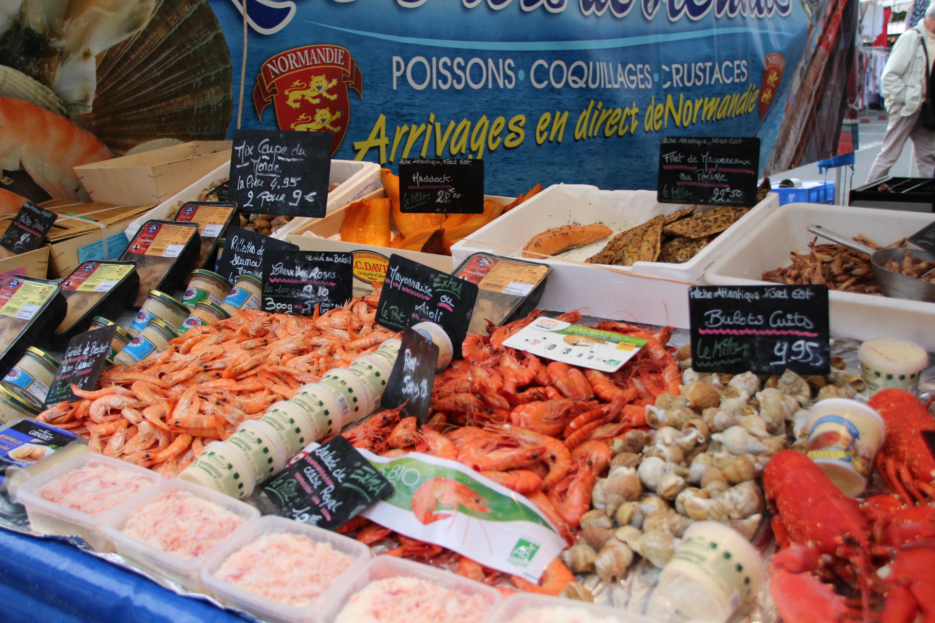 Saint-Pierre, sole, turbot, maquereau… Le nombre de variétés différentes de poissons avoisine les 50, crevettes comprises, sur le stand de Pauline et Jonathan, gérants des Flots de Trouville. Chaque mercredi, ils se lèvent tôt pour relier la côte à Vernon. « Il y a 24h, les poissons étaient encore dans l’eau, nous les avons récupérés à 17h hier soir, on propose aux clients du poisson très frais », précise Jonathan. C’est en direct que s’approvisionnent Les Flots de Trouville, auprès des petits bateaux de pêcheurs.
