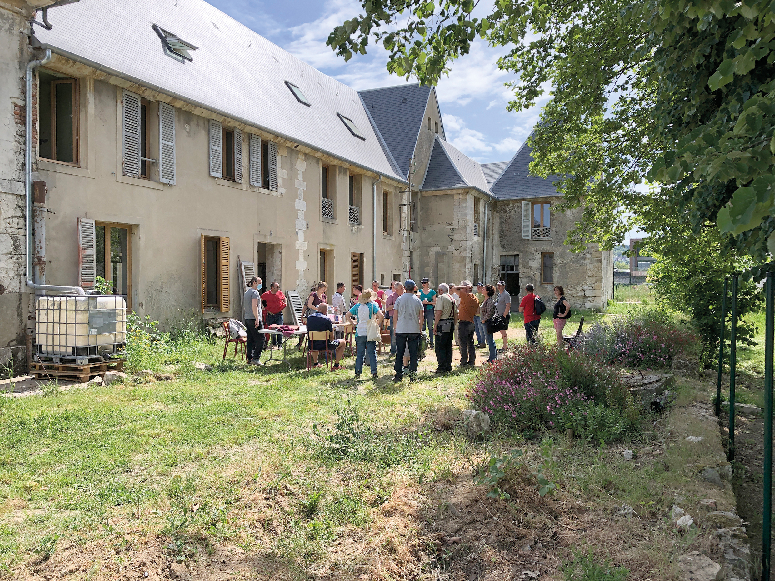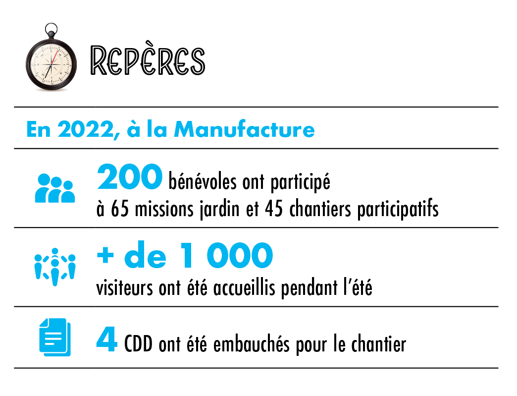 Un tiers-lieu, quésaco ? « Il s’agit d’un lieu dédié au tiers-temps, c’est-à-dire un temps qui n’est ni celui de la vie privée ni celui du travail, c’est un temps social », explique Pascal Vazard, président de la société coopérative d’intérêt collectif (SCIC) qui pilote le projet. Le but de la Manufacture : rassembler les habitants et les entreprises du territoire afin de les inciter à réaliser leur transition écologique, le tout dans une démarche participative. Et ça fonctionne déjà ! « Grâce à 180 bénévoles, dont beaucoup de débutants, nous avons réussi à recréer un écosystème complet dans notre jardin, c’est incroyable », poursuit M. Vazard. Avec l’ouverture au public du bâtiment dès l’été prochain, les activités de la Manufacture vont prendre de l’ampleur. Dans les faits, les trois étages de cet ancien couvent du 17e siècle abriteront un restaurant, 10 espaces dédiés à des entreprises œuvrant pour la transition écologique, un espace de co-working et des salles de réunion. Le lieu se veut à la fois expérimental, en testant un mode de vie plus résilient, et pédagogique, en incitant par l’exemple le public à faire de même.