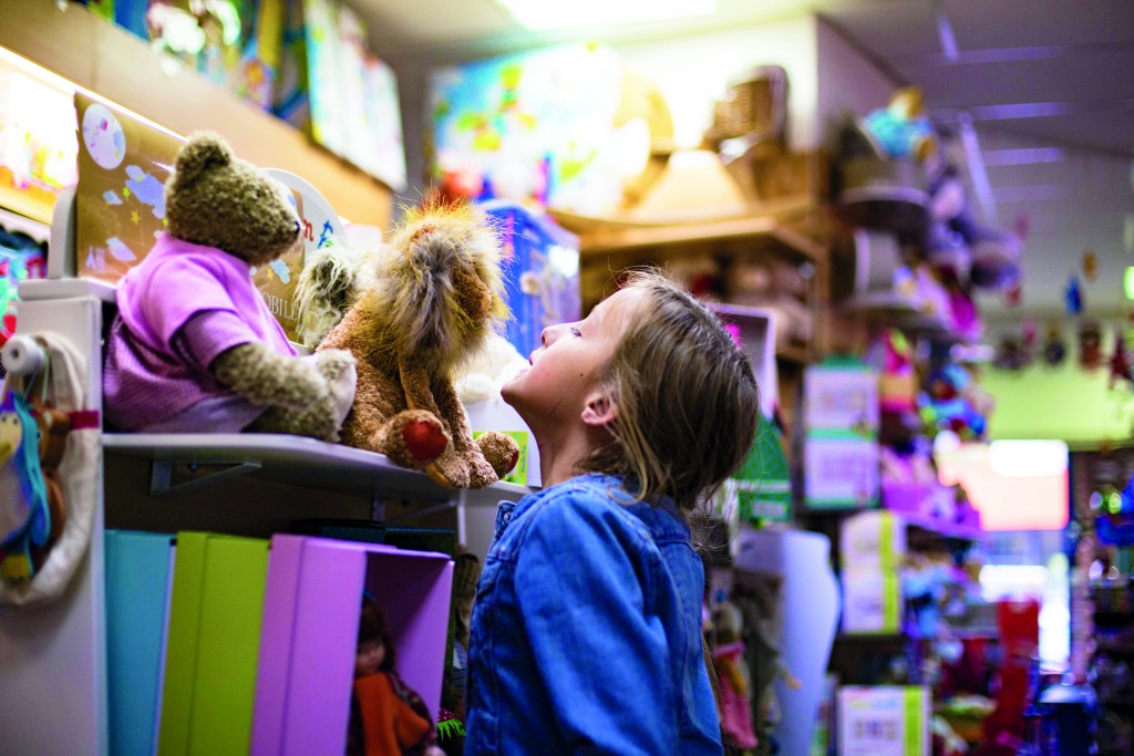 Le centre-ville de Vernon est pourvu de commerces très variés. On peut y faire ses courses alimentaires mais aussi du shopping, prendre un café en terrasse, déguster une pâtisserie à l’heure du goûter… ou préparer sa liste de Noël, comme cette petite fille.
