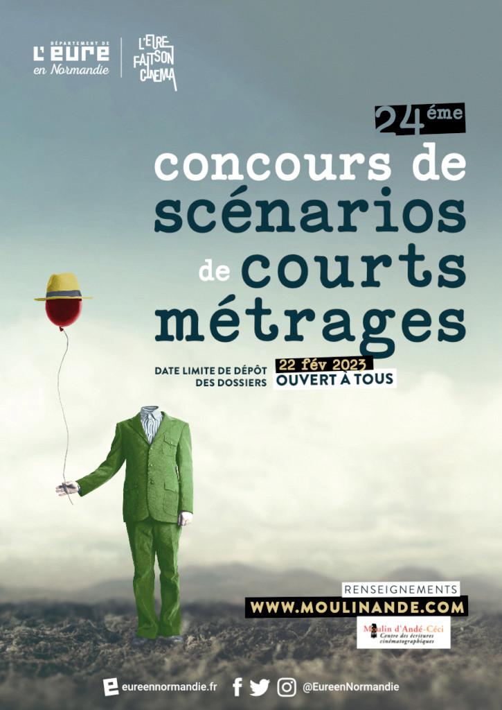 Depuis 24 ans, le Département de l’Eure soutient les talents émergents du 7e art. En collaboration avec le Moulin d’Andé (Centre des Ecritures Cinématographiques), le Conseil Départemental présente l’édition 2023 de son concours de scénarios de films. La compétition est ouverte à tous. Seules conditions : le scénario ne doit pas excéder 20 pages et l’action doit se dérouler dans l’Eure. Un comité distinguera 6 lauréats qui bénéficieront d’un atelier de réécriture de 5 jours. Dans un second temps, un jury de professionnels désignera le 1er prix avec, à la clef, 5 000 € pour l’auteur et 25 000 € d’aide à la production. Date limite de dépôt des scénarios : 22 février.