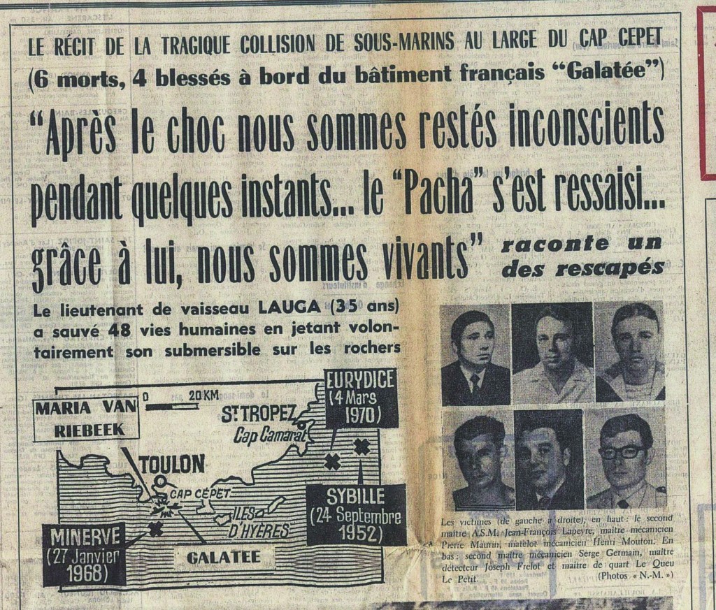 Le quotidien Nice-Matin relate l'accident des deux sous-marins dans ses pages le 22 août 1970.