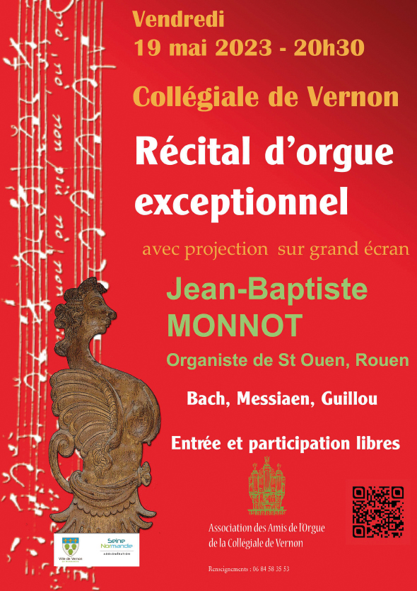 L’association des Amis de l’Orgue organise un récital d’orgue, le vendredi 19 mai prochain, à 20h30, à la collégiale Notre-Dame de Vernon, avec projection sur grand écran. Pour l’occasion, Jean-Baptiste Monnot, organiste de Saint-Ouen de Rouen, sera présent pour offrir une performance musicale d’exception. L’entrée est libre pour tous les amateurs de musique. Venez nombreux pour profiter de cet événement musical unique en son genre.
