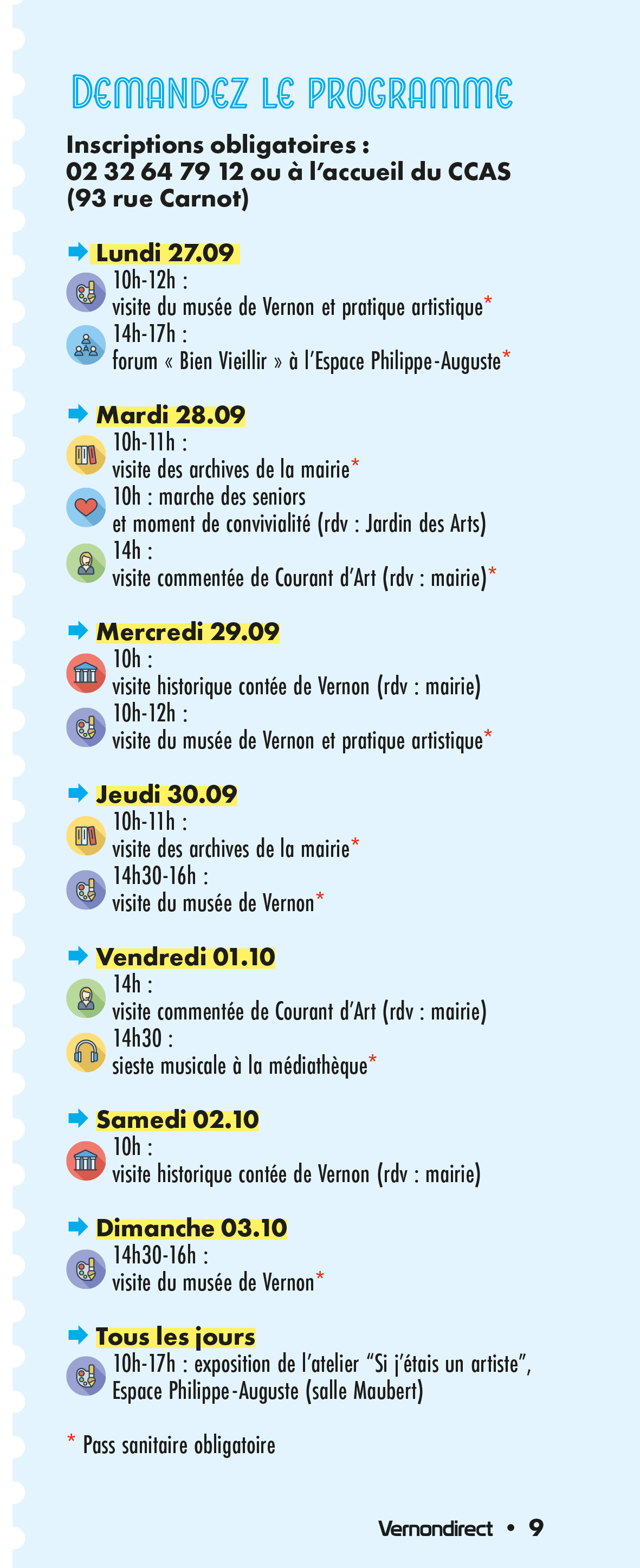 Lancés en 2020 pour soutenir l’économie locale et les restaurateurs, ces bons permettent à chaque senior de plus de 65 ans habitant à Vernon de dépenser 30€ dans le restaurant de son choix (sur liste). Pour profiter de l’un ou l’autre, il est nécessaire de s’inscrire avant le 30 septembre. L’inscription est également nécessaire pour recevoir le colis de Noël (date limite : 17 septembre). Ce panier garni sera à retirer à l’Espace Philippe-Auguste les 29 et 30 novembre. Depuis la crise sanitaire, il est livré au domicile des personnes ne pouvant se déplacer.