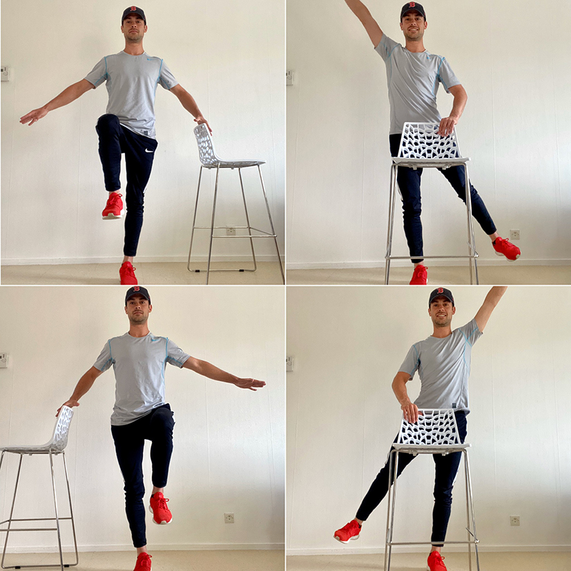 4 Tenez-vous en équilibre sur un pied. Travailler l’équilibre évite les troubles moteurs et les chutes.