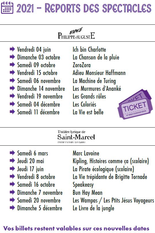 La culture vous manque depuis le début de la crise sanitaire ? Pas de panique, les spectacles ont été reportés et les billets restent valables.