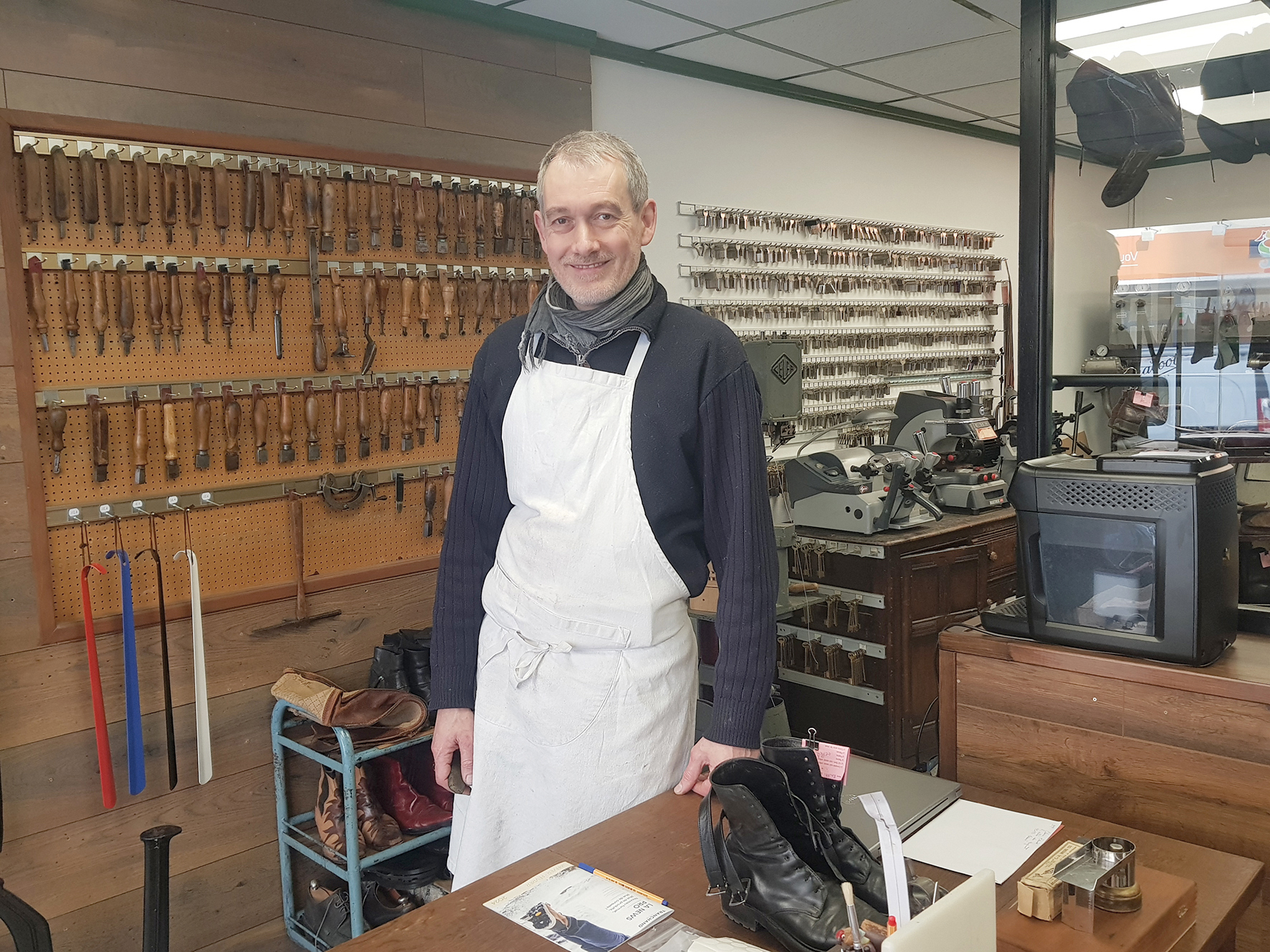 On dit que les cordonniers sont toujours les plus mal chaussés. Eh bien, pas Hugo Crouail ! Pendant 19 ans, cet artisan bottier a travaillé chez John Lobb, temple de la chaussure de luxe. En octobre, celui-ci reprenait la cordonnerie de M. Hamel. Aujourd’hui, il y propose de la réparation traditionnelle, des produits d’entretien et des clefs. Sa botte secrète ? Un savoir-faire qui lui permet « d’effectuer des réparations poussées allant jusqu’au réassemblage total d’un soulier. »