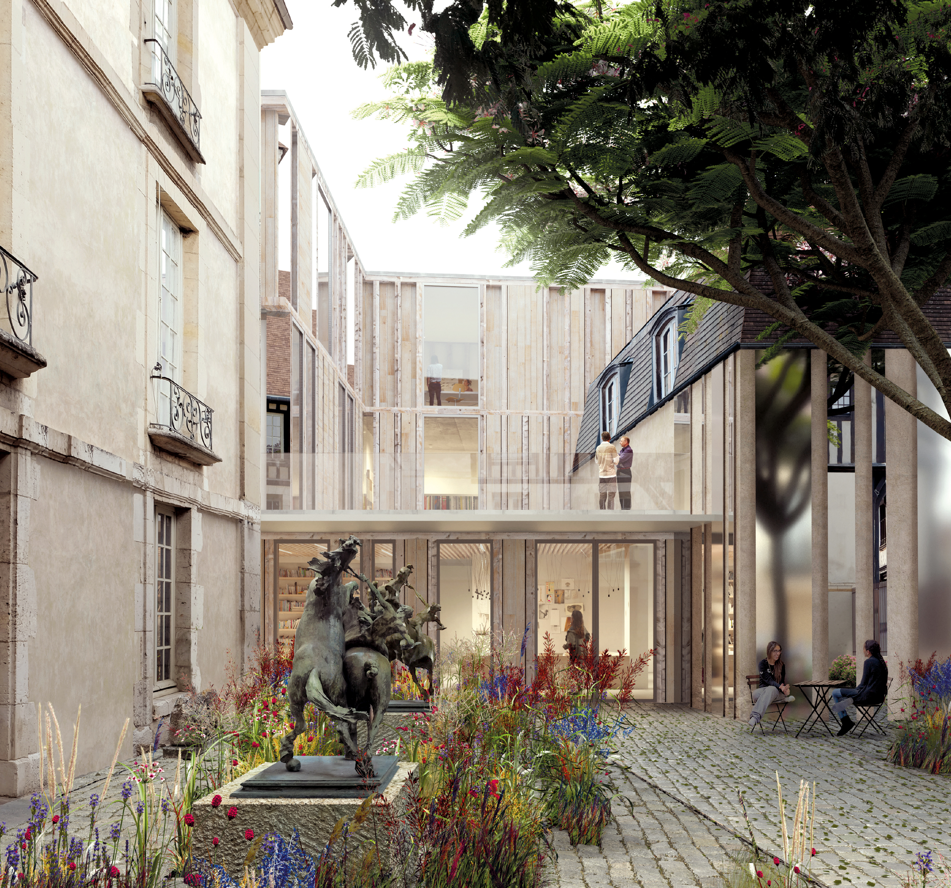 Voici le futur visage du musée A.-G. Poulain réalisé par le cabinet d’architecture Jung. Les travaux prévoient la restructuration totale de l’aile droite, un renouveau complet de la scénographie, des espaces repensés pour l’accessibilité, la création d’une salle de médiation, la prise en compte des défis environnementaux, l’amélioration de la sécurité et de la conservation des œuvres.