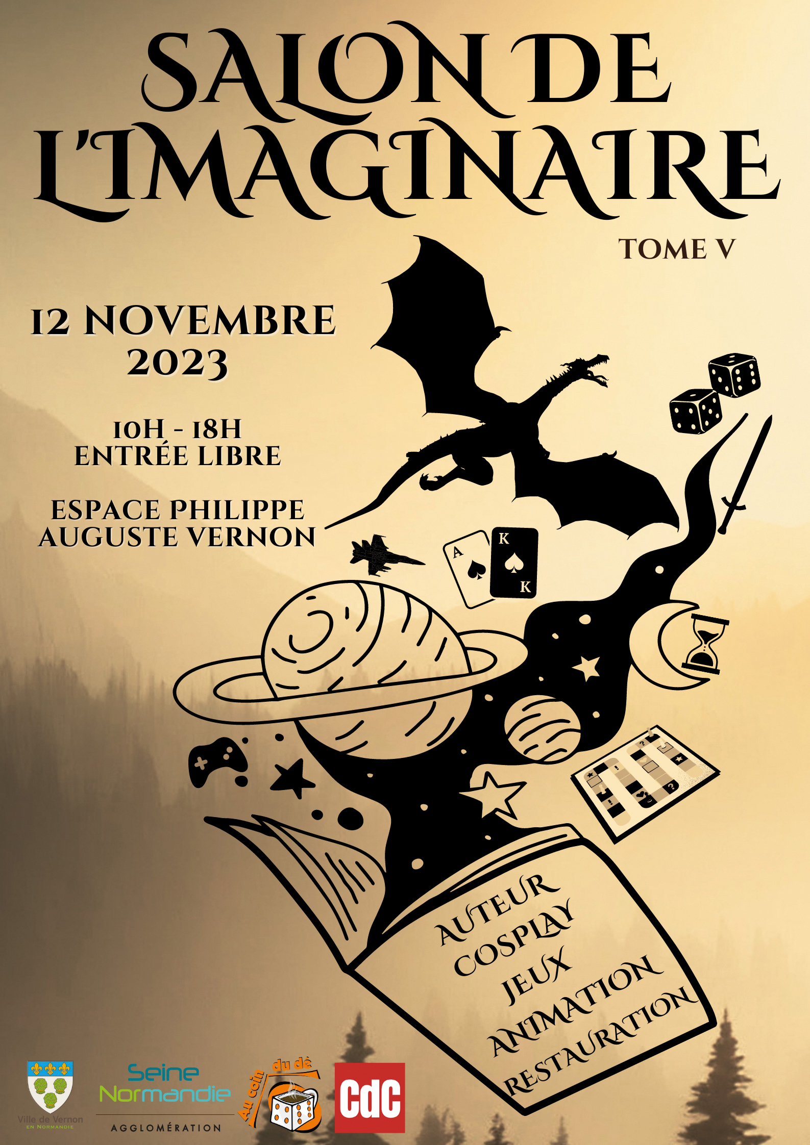 Pour sa 5e édition, le Salon de l’Imaginaire se tiendra pour la première fois à Vernon le dimanche 12 novembre à l’Espace Philippe-Auguste ! Votre café ludique Au Coin du Dé (72 rue Carnot), adhérent au CDC, sera évidemment présent, et diverses animations auront lieu tout au long de la journée pour petits et grands. Vous découvrirez des univers différents comme la science-fiction, le fantastique, la fantasy, le steampunk ou le post-apocalyptique. Vous y rencontrerez également des artistes, des artisans, des auteurs et des associations. Vous pourrez essayer différents types de jeux de cartes, de figurines ou de rôles ! L’entrée est gratuite donc venez nombreux passer une journée dans le monde des rêves avec les exposants. Une restauration est prévue sur place.