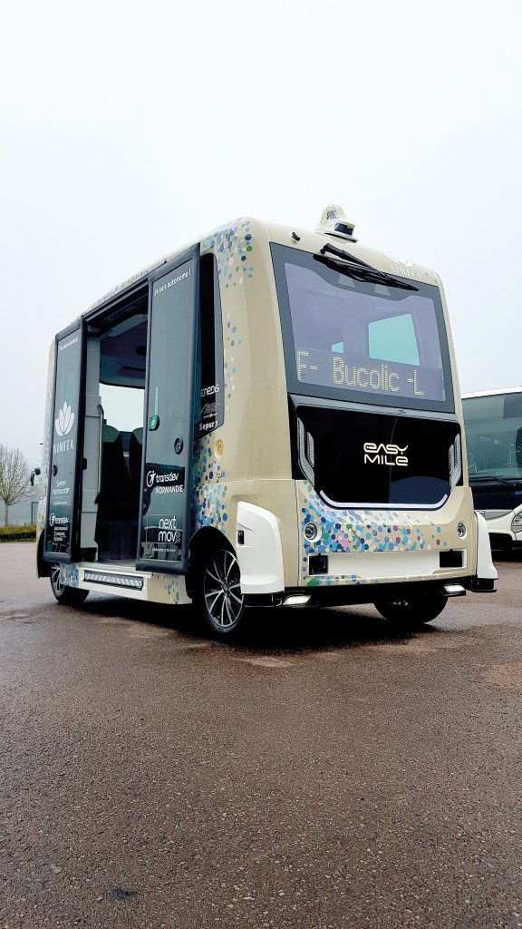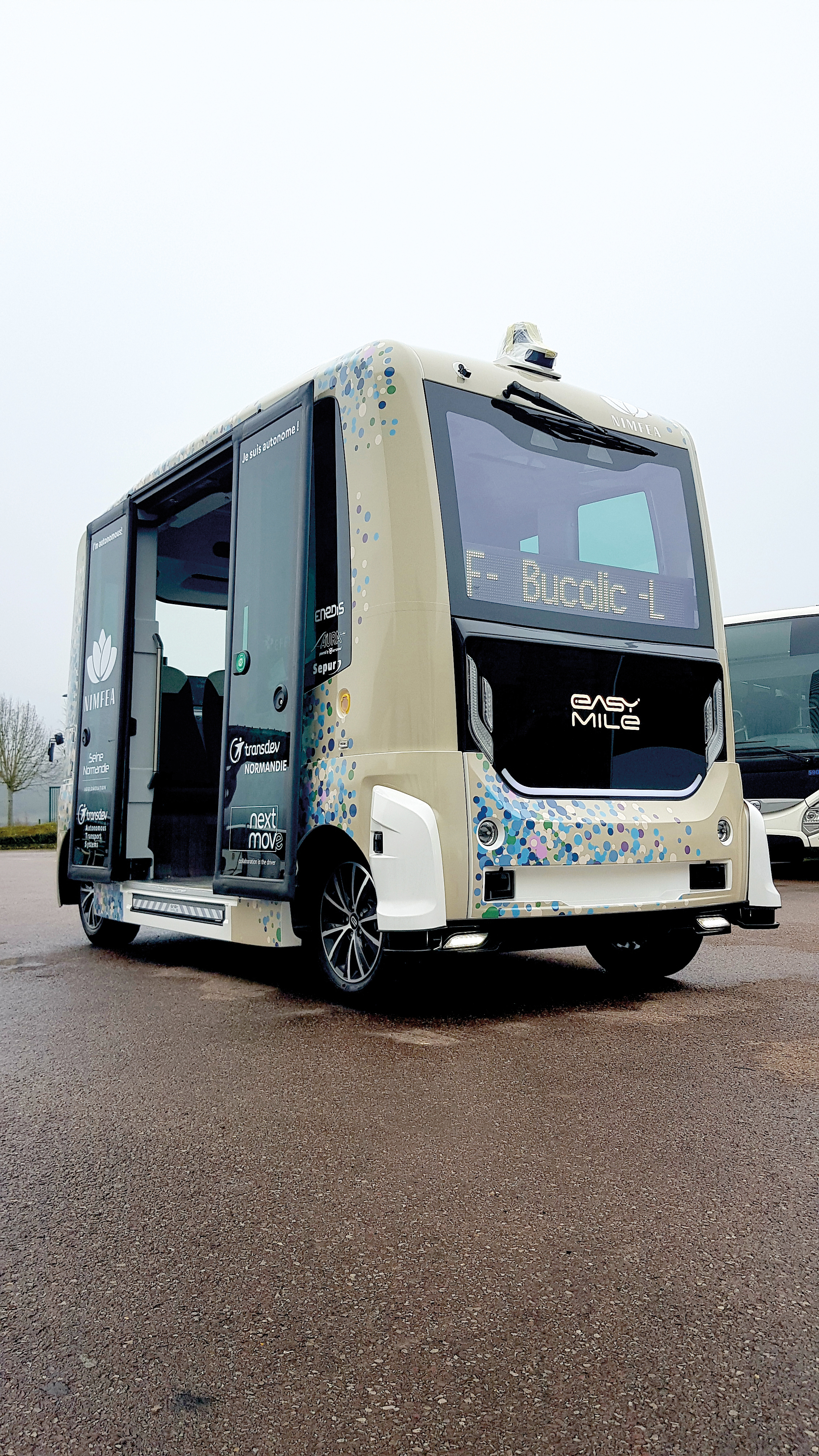 C’est un véhicule sans volant et sans pédales. A la place, la navette NIMFEA est équipée de lidars, une technologie similaire au radar mais avec des lasers. Les 9 lidars balayent l’environnement à la vitesse de la lumière, de façon quasi-instantanée. Leur rôle est de repérer les obstacles afin de s’intégrer dans le trafic routier. Dans l’ordinateur de bord, il y a une cartographie 3D du trajet, comparée en permanence avec ce que voient les lidars du toit, dont la portée est de 200 m. La navette sait où elle est grâce à des balises GPS RTK et des odomètres sur les roues qui mesurent la distance parcourue. Ces 4 systèmes permettent d’avoir une précision de 1cm par rapport au trajet défini.