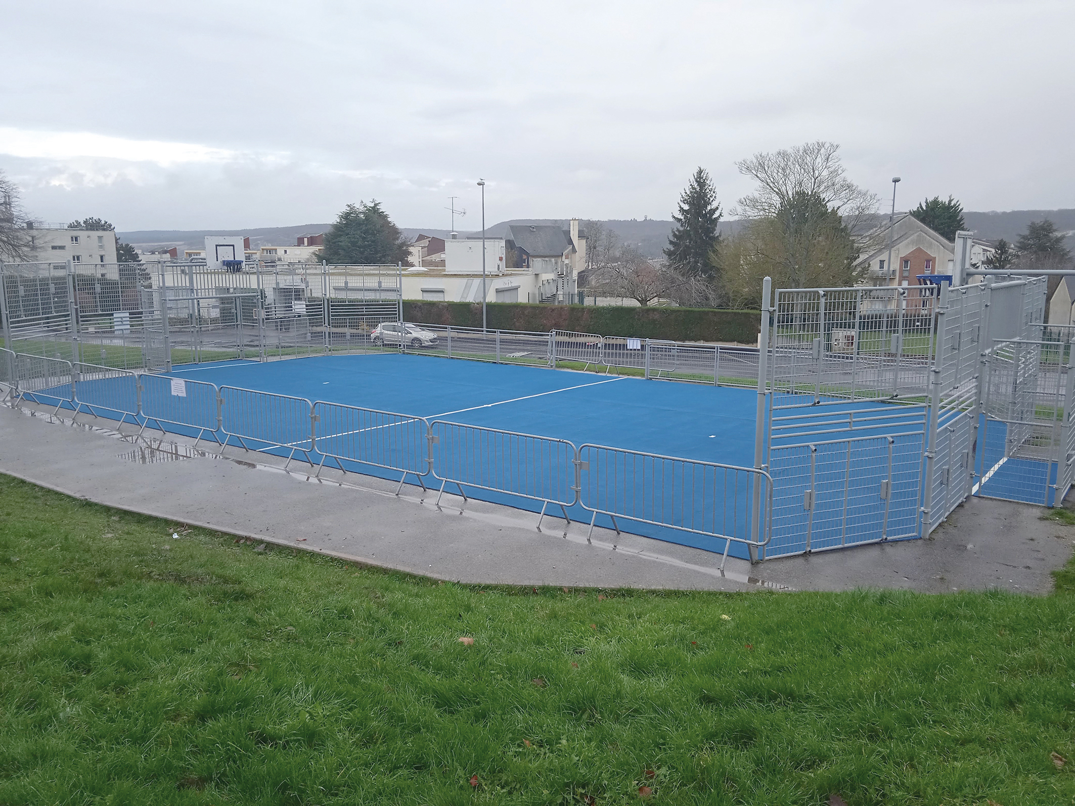 Le terrain multisports situé en face de l’école Marie-Jo Besset est désormais pourvu d’une pelouse synthétique. Cet investissement, qui s’élève à plus de 13 500 €, a été réalisé sur demande des jeunes et des habitants de ce quartier prioritaire. En effet, le nouveau revêtement permet d’atténuer le bruit des ballons et d’amortir le choc en cas de chute.