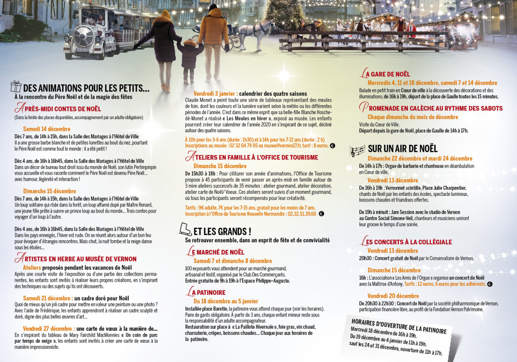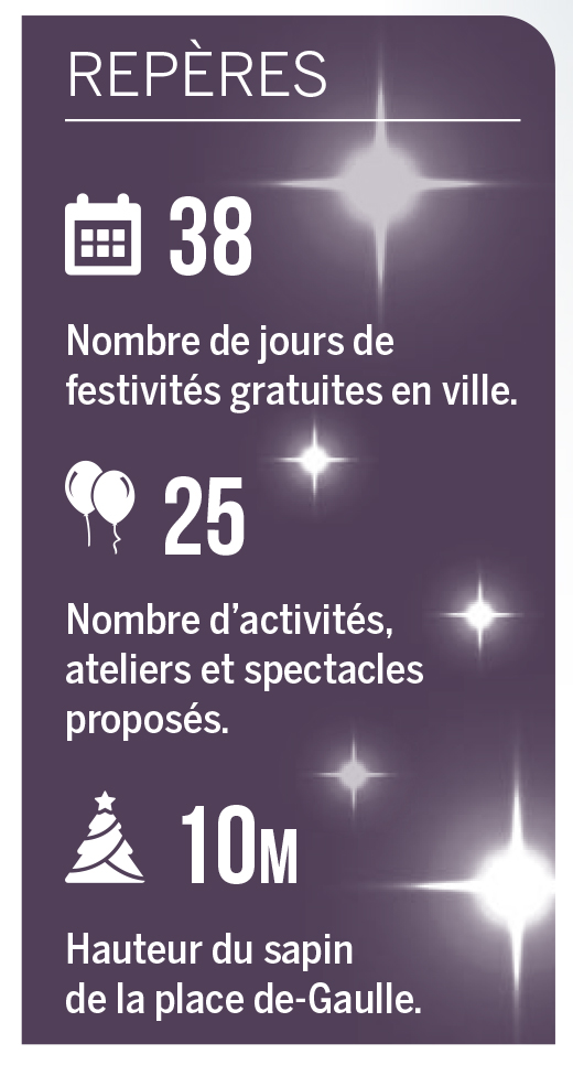 Quant aux adultes, ils auront aussi leur part de bonheur. Huitres, foie gras, vins fins, autant de mets de fête qu’ils retrouveront à La Paillote Hivernale, la petite sœur de celle qui égaya vos soirées en bord de Seine cet été. Elle bordera la grande patinoire de 160 m², place Barette, ouverte à tous à partir de 3 ans et entièrement gratuite (prêt de patins inclus). Et après s’être dégourdi les jambes, il sera toujours possible de faire un tour de calèche pour admirer, une dernière fois, les 400 petits sapins décorant la ville et les 250 motifs lumineux projetés sur les bâtiments.
