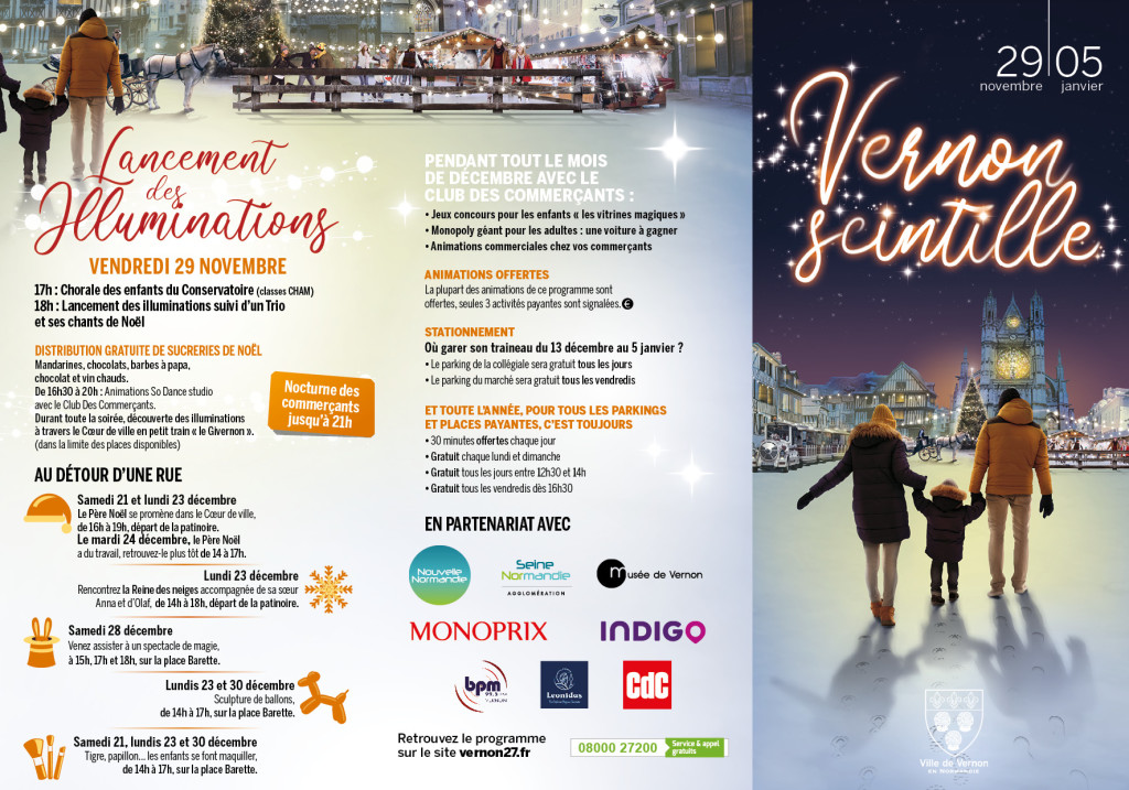 Cette année encore, Vernon Scintille vous en mettra plein les yeux. Du 29 novembre au 5 janvier, vivez la magie des fêtes de fin d’année grâce aux animations offertes par la ville. Et ce n’est pas que pour les enfants !