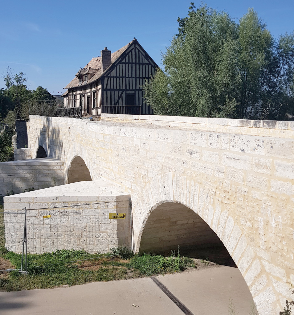 Une exposition a été installée au pied du pont médiéval de Vernonnet, à l’occasion des Journées Européennes du Patrimoine, les 17 et 18 septembre. A travers plusieurs panneaux, celle-ci détaille l’histoire du monument le plus emblématique de Vernon. « Nous l’apercevons tous les jours et, si nous avons décidé de mettre son histoire en valeur cette année, c’est parce que le monument sort d’une longue période de restauration », confie Nicole Balmary, maire-adjointe en charge de la culture et du patrimoine. En effet, voilà 2 ans que l’édifice était en travaux. Près de 665 000 €, financés à 80% par le Département, ont été nécessaires pour lui donner une seconde jeunesse. Principal axe de travail : la réouverture des arches, alors murées, et le remplacement des pierres défectueuses par d’authentiques pierres de Vernon. Le pont médiéval a désormais retrouvé sa superbe… et attend les férus d’Histoire !