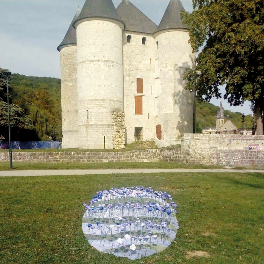 A l’occasion des Journées Européennes du Patrimoine, le week-end des 19 et 20 septembre, le Département de l’Eure a présenté une œuvre d’art collective dans plusieurs sites emblématiques du territoire. Baptisé De Lin à l’Autre, ce projet a nécessité la participation de nombreux volontaires afin de confectionner 15 000 petites fleurs de lin. Celles-ci ont ensuite été assemblées suivant les directives de François Abélanet, spécialiste du land art et des anamorphoses (images déformées). La déclinaison vernonnaise de l’œuvre a été réalisée grâce à la complicité des écoliers et des centres sociaux : on pouvait ensuite admirer le résultat dans le parc des Tourelles.