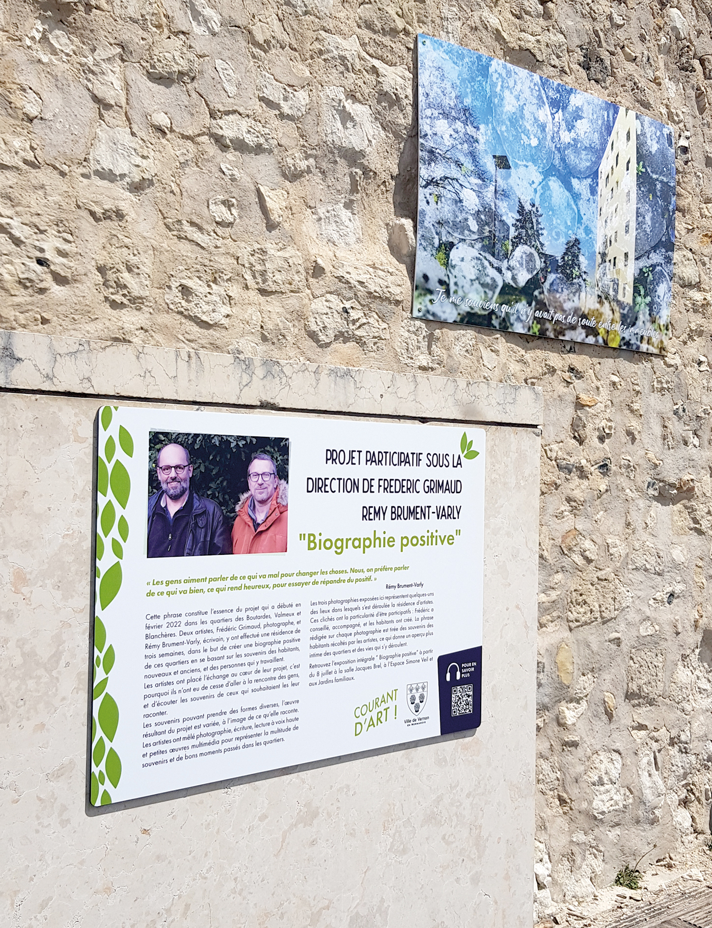 Rémy Brument-Varly, auteur, et Frédéric Grimaud, photographe, continuent d’écrire la « biographie positive » du quartier des Valmeux-Boutardes. Un projet artistique participatif initié par la municipalité en février. Avec les habitants, les artistes ont publié un 2e numéro du « Biographe du Quartier », un petit journal à découvrir sur le site de la ville (vernon27.fr). Il y est question de souvenirs, de l’atelier Création mode ou des cours de théâtre à Cervantès. «Biographie positive», c’est aussi une exposition à venir, dont 2 œuvres sont déjà installées au jardin des Arts en écho au parcours «Courant d’art».