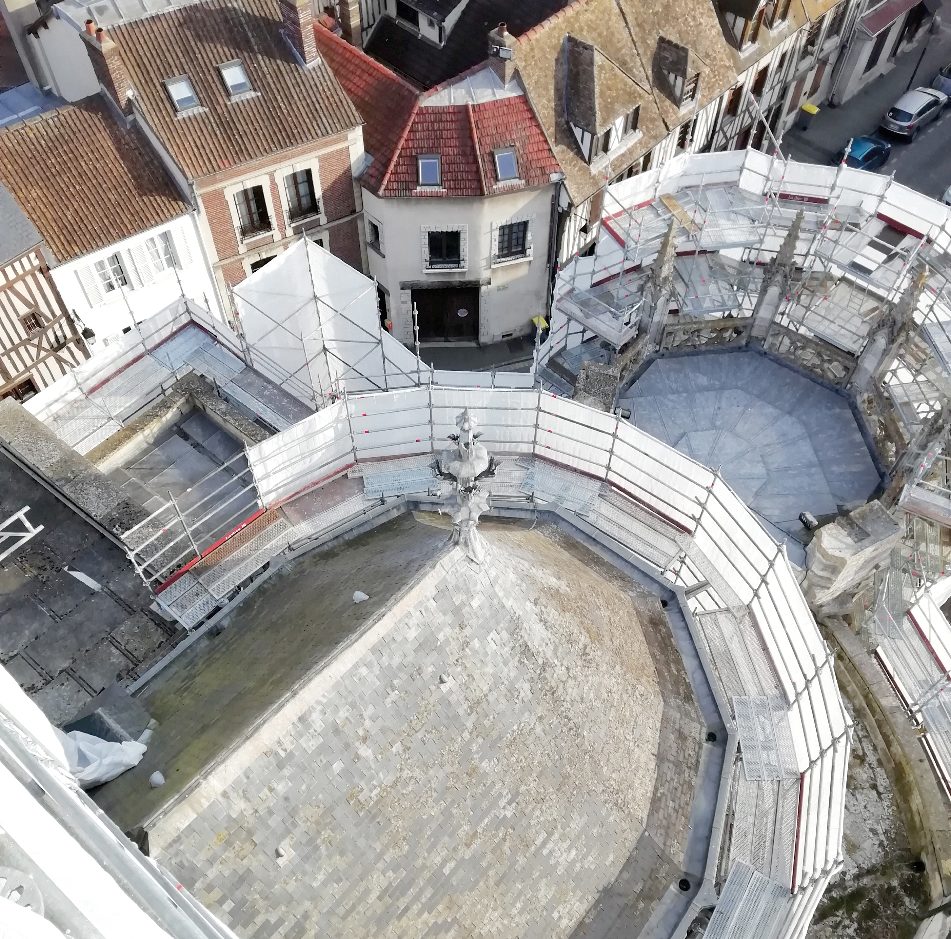 Parmi eux, des couvreurs reprennent les ardoises, les tuiles et le plomb des toits, tandis que des restaurateurs de pierre s’occupent des sculptures et des gargouilles. « Le chantier s’achèvera au début de l’année prochaine mais l’église reste ouverte pendant les travaux ». 2,4 millions d’euros ont été mobilisés pour cette 1re phase, à moitié financée par la mairie. L’implication de la Fondation Vernon Patrimoine a permis de récolter 110 000 €, grâce aux dons de généreux mécènes.