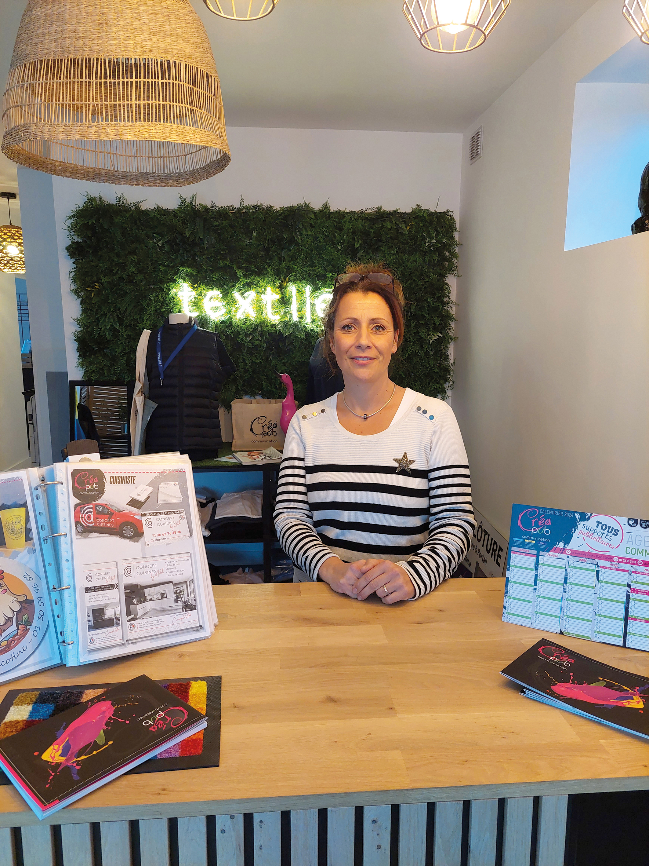 Nouveau local pour une nouvelle vie ! L’équipe de Créa Pub a posé ses valises avenue de Rouen cet été. Déménager était devenu une nécessité pour la fondatrice Cathie Oldra. « Ici, on va pouvoir étendre notre activité, être plus à l’aise, mieux accueillir les clients », souligne-t-elle au milieu du showroom avec vue sur la Seine. L’agence travaille principalement avec les PME, les artisans et les restaurateurs. « On les accompagne de A à Z. On fait beaucoup de plaquettes d’entreprise, on peut les épauler pour les sites internet… Le print, le marquage des véhicules et le textile sont nos points forts. On crée et on fabrique nous-mêmes, il n’y a pas de sous-traitance », insiste-t-elle. Avec un mot d’ordre constant : la convivialité. « Je veux que les gens viennent parce qu’on est dans les clous au niveau qualité/prix, mais aussi parce qu’ils sont bien reçus. Je propose toujours le petit café, je veux que les gens soient ici chez eux ! »