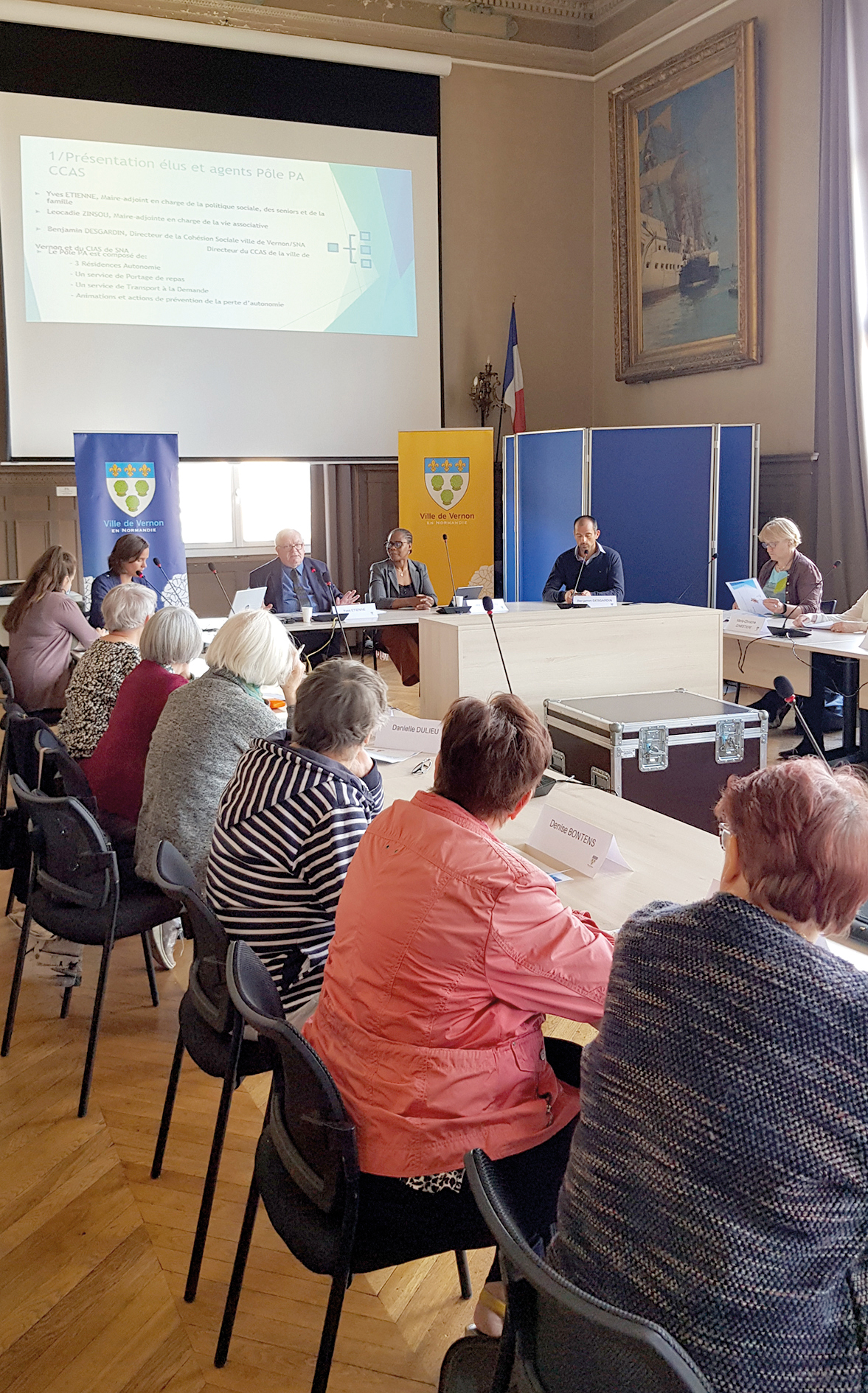 Le Conseil des Aînés de Vernon vit une seconde jeunesse. Eclipsée depuis 2 ans par la crise sanitaire, l’instance a officiellement été relancée lors d’une session inaugurale le 5 mai ouverte par Yves Etienne, maire-adjoint en charge de la politique sociale, des seniors et de la famille. Une trentaine de membres siègent au Conseil, répartie en quatre collèges représentant les seniors, les élus, les professionnels et les associations. Leur mandat est calqué sur celui de l’équipe municipale et s’étend donc jusqu’à 2026. « Le rôle du Conseil des Aînés est d’abord de nous aider à optimiser notre politique en faveur des personnes âgées », souligne Léocadie Zinsou, maire-adjointe en charge de la vie associative et de la participation citoyenne, « mais nous allons également leur demander ce sur quoi ils veulent travailler, les questions de culture et d’aménagement urbain semblent particulièrement les intéresser. »