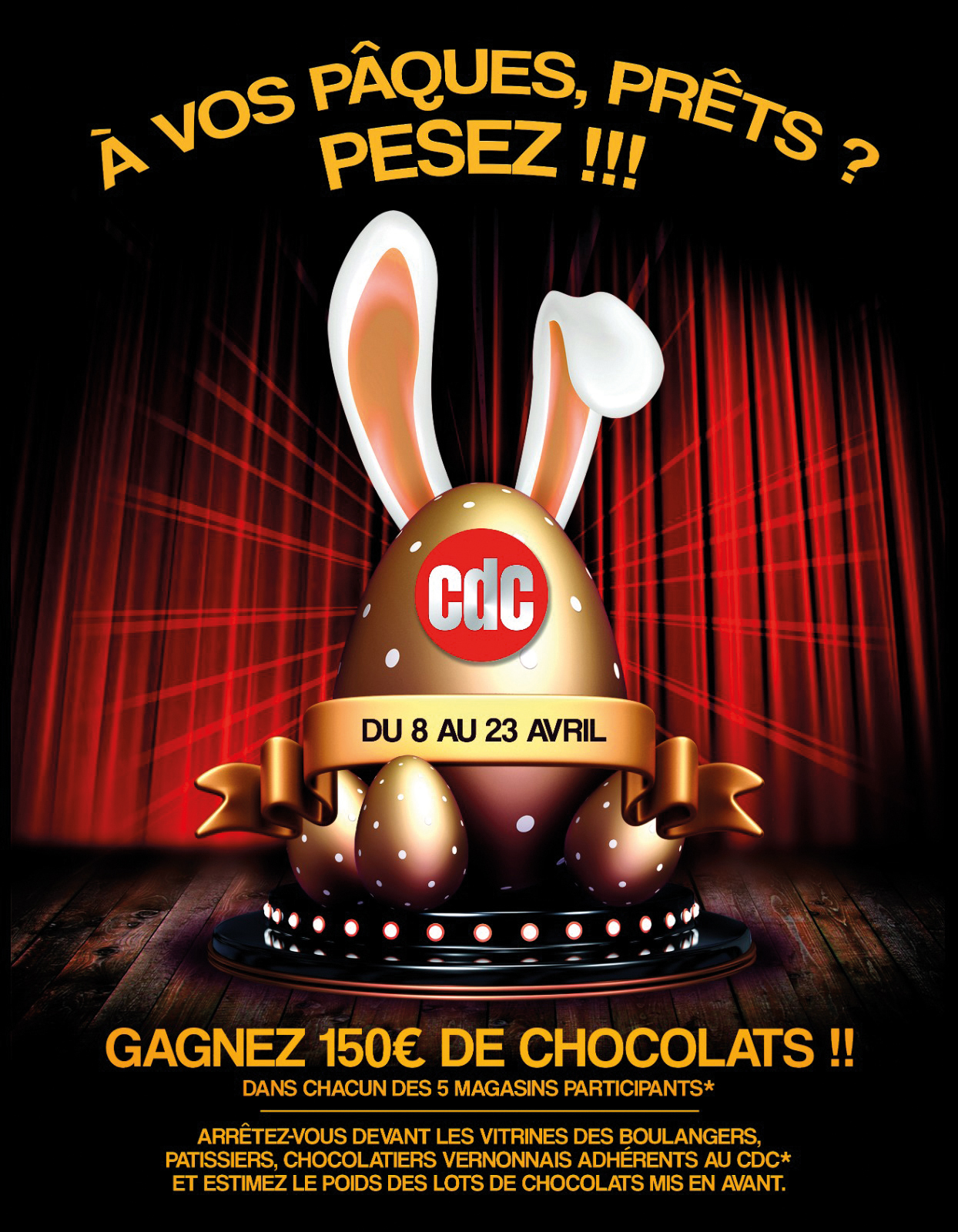 Pour gagner, rien de plus simple : arrêtez-vous devant leur vitrine, estimez le poids des lots de chocolats mis en avant, puis rentrez pour remplir le bon qui vous sera remis. RDV très prochainement sur la page Facebook du CDC pour consulter la liste des gagnant(e)s !
