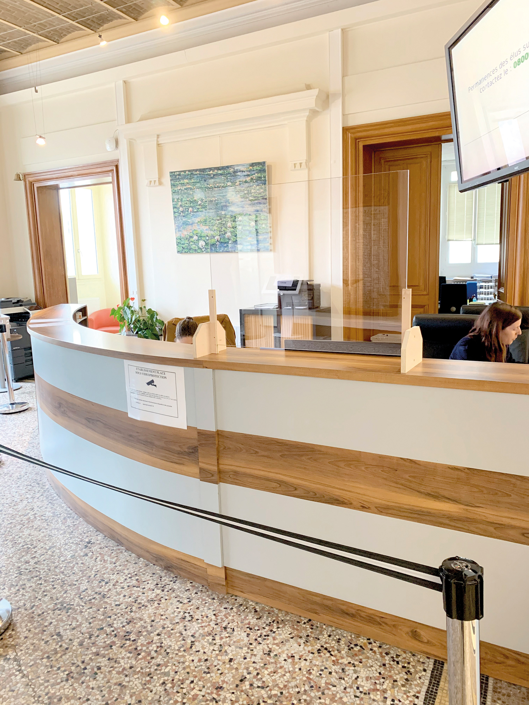 La Régie Bâtiments de la mairie était à pied d’œuvre pendant le confinement. Parmi ses nombreuses activités, la réalisation de plaques de plexiglass made in Vernon destinées à accueillir les usagers en toute sécurité dans les différents services de la ville. « Plus d’une vingtaine d’écrans ont été fabriqués sur mesure par les menuisiers du centre technique municipal », détaille Pauline Robert, directrice générale des services techniques, « ils permettent de protéger à la fois le personnel d’accueil et les Vernonnais, la sécurité de tous face au COVID-19 étant notre priorité ». L’hôtel de ville, le Centre communal d’action sociale (CCAS), le Musée et les Résidences Autonomie en sont aujourd’hui pourvus. Par ailleurs, les agents de la Régie ont également fabriqué des cales de portes : ainsi, plus besoin de toucher les poignées ! A noter que si l’accueil de la mairie a rouvert dès le 11 mai, les contacts par téléphone ou internet sont à privilégier.