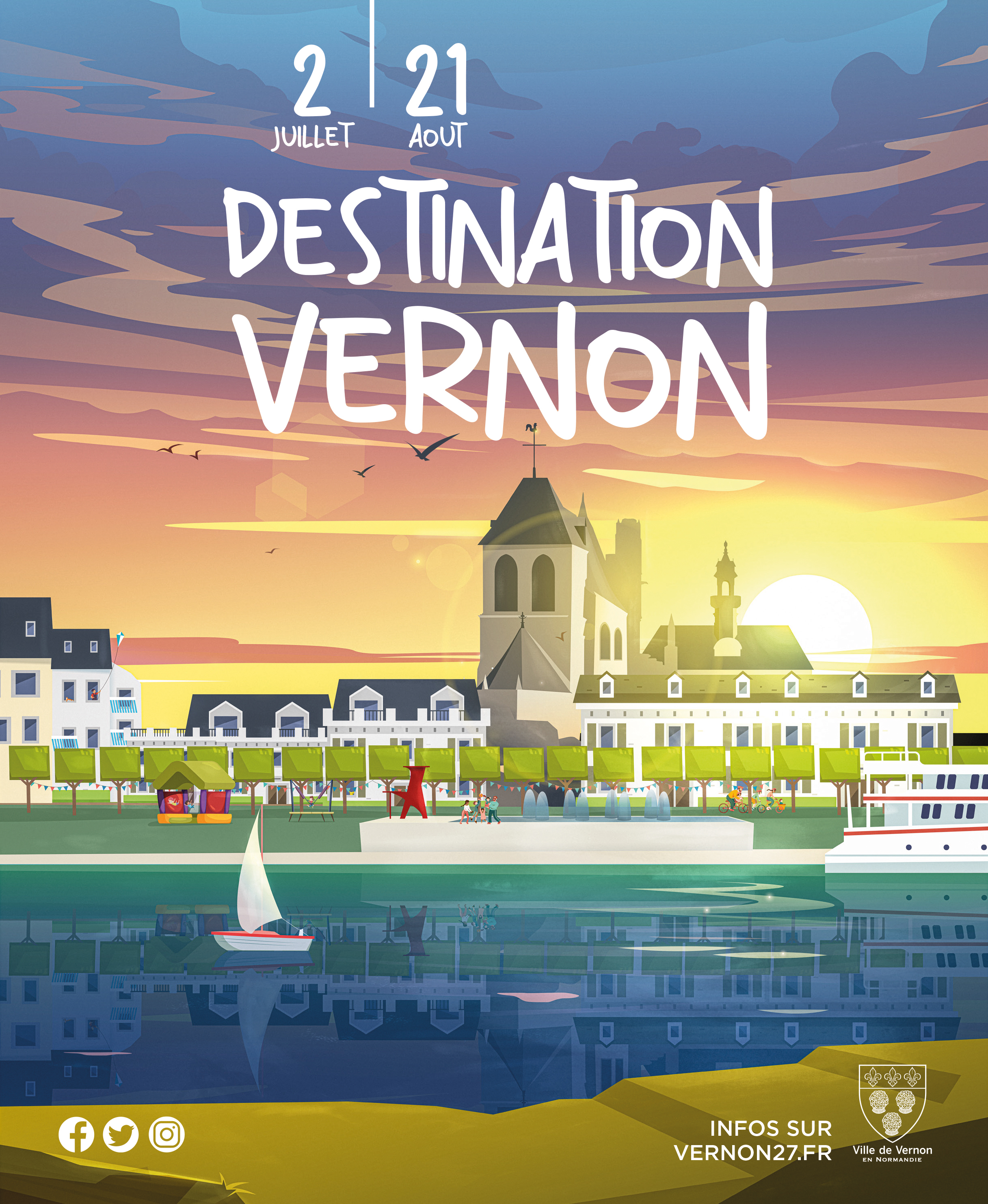 Enfilez votre bob et mettez vos lunettes de soleil, direction la riviera vernonnaise ! Pas besoin de passeport pour se caler dans l’un des 360 transats de Destination Vernon, le grand programme d’animations estivales proposé par la municipalité. Celui-ci a débuté sur les chapeaux de rou(lettes) le 2 juillet avec l’inauguration du nouveau skate parc et l’Open Start du SPN Basket. Jusqu’à fin août, le sport continue. « Grâce aux associations partenaires, nous sommes fiers de pouvoir proposer des initiations à une dizaine de sports, le tout gratuitement », se réjouit François Ouzilleau, maire de Vernon. Parmi ces disciplines, de la voile et même un baptême de plongée (23 et 24 juillet). Vous ne partez pas en vacances à la mer ? C’est la mer qui vient à vous ! Transformer la ville en station balnéaire, avec la Seine comme ligne d’horizon, telle est l’ambition de Destination Vernon. Entre tournois de volley et balades en paddle ou à bord du Ladybird (infos : bateauatelier.fr), il y aura de quoi se rafraîchir. « Destination Vernon se déroule majoritairement en bord de Seine mais nous proposons également des animations dans les quartiers prioritaires », tient à souligner François Ouzilleau. « Deux soirées musicales et deux séances de cinéma en plein air seront organisées au Vallon Saint-Michel afin de faire vivre cet écrin de verdure au cœur des Boutardes. »