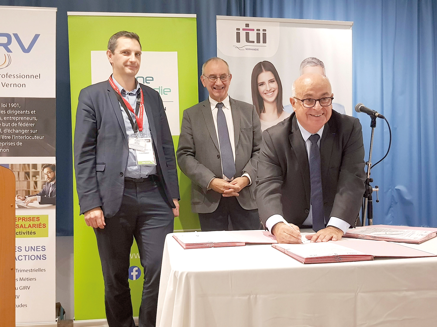 A l’occasion du salon du Groupement interprofessionnel de la région de Vernon (GIRV), le 7 novembre, un partenariat a été conclu afin d’encourager les démarches écologiques dans les entreprises locales. Cette année, pas de trophée de l’environnement remis à une société mais la signature d’un pacte entre le GIRV, Seine Normandie Agglomération (SNA) et l’ITII, l’école d’ingénieurs du Campus de l’Espace, pour la période 2019-2022.