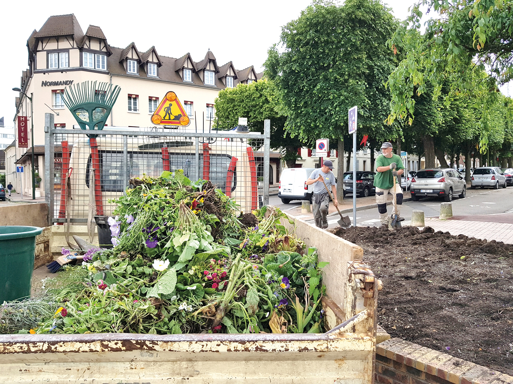 « Ce classement est une carte d’identité à promouvoir pour la ville », précise Nicole Balmary, l’adjointe au maire en charge du développement durable. « La qualité est attendue à plusieurs niveaux, pas seulement le fleurissement. Pour mériter ce classement, nous devons montrer au jury qui passe à plusieurs reprises dans l’année que nous garantissons un excellent niveau d’agrément. Le développement durable passe par plusieurs démarches comme le “Zéro phyto“, c’est-à-dire interdire l’utilisation des pesticides dans les espaces verts et promouvoir les démarches naturelles. Le désherbage se fait par exemple à la main et non plus avec des produits chimiques, ce qui demande forcément plus de temps et d’énergie et génère plus de végétation sauvage », détaille Nicole Balmary. « Nous avons depuis quelques temps supprimé les bâches en plastique pour les remplacer par du paillis naturel, ce qui permet des économies d’eau notamment ». Les écorces plus ou moins fines jouent ce rôle dans les massifs ou dans les pots. Tout comme l’usage des coques de fèves de cacao. Saurez-vous en trouver dans la ville ?