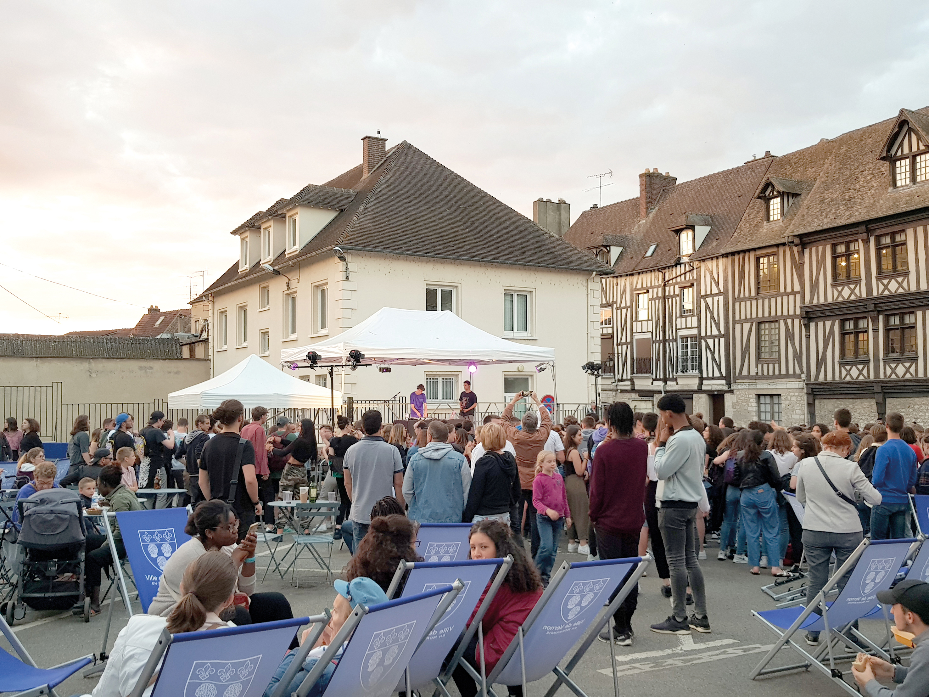 VD144-focus-reperesAprès le succès de la Foire de Vernon, un autre temps fort de l’année revient dans son format pré-pandémie. « La Fête de la Musique, c’est la fête de tous les habitants, des musiciens, des bars et des cafés », souligne le maire, « il s’agit d’un vrai moment populaire que la ville soutient en permettant aux amateurs de faire de la musique dans les meilleures conditions possibles. » Cette année, les 3 scènes emblématiques se réinstallent en face du Globe, place de l’Ange et place Chantereine. Toutes sont gérées par des techniciens son et lumière recrutés par la municipalité. « Nous traitons avec la même exigence l’ensemble des musiciens », affirme Emmanuel Cadot, le régisseur du Studio, « la Fête de la Musique est un moment démocratique où chacun peut faire l’apprentissage de la scène et, peut-être, se faire repérer, il y a un côté tremplin. » Les groupes pouvaient librement s’inscrire et tous se sont vus proposés un créneau. Certains sont très jeunes et ont déjà fait parler d’eux. A l’instar de Djette LL, la DJ de 14 ans qui, dégottée au débotté, aura fait bouger les foules à la Foire, samedi 4 juin. Rock, pop, musiques traditionnelles ou électroniques, la programmation reflète, encore une fois, la diversité des talents vernonnais.
