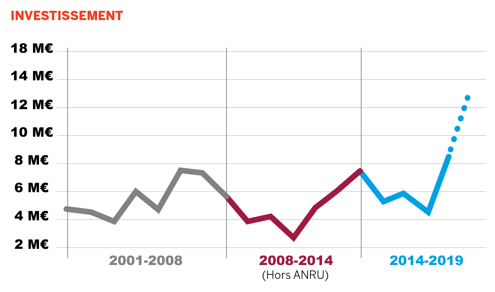 Les dépenses d’équipements ont été presque deux fois moins importantes que celles des villes comparables (198 €/habitants en moyenne sous le précédent mandat contre 517 €/habitants en 2019). Comme l’équipe municipale s’y était engagée dans Vernon Mérite Mieux (engagement n° 121), tout à été mis en œuvre pour rattraper ce retard en matière d’investissements et d’équipements. Cela grâce à la baisse des dépenses, la vente du patrimoine abandonné et la recherche active de nouveaux financements.