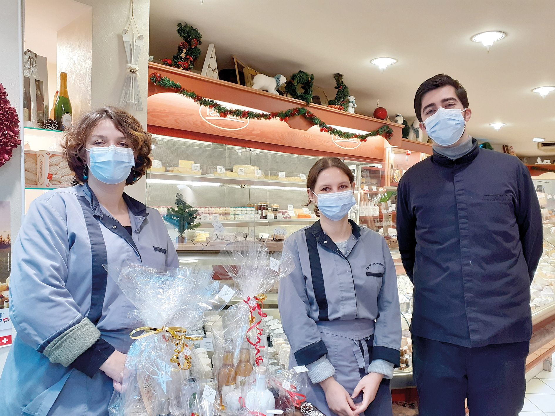 En Ville Fromage & Détail rue Saint-Jacques NoëlQui dit repas de fête dit plateau de fromages. En cette fin décembre, Romain Hagron et son équipe mettent donc les bouchées doubles chez Fromages & Détail. « C’est le moment le plus fort de l’année », explique le fromager, appuyé par l’ancien patron Claude Joseph. La cave d’affinage de l’établissement regorge de préparations spéciales associées, notamment, à la truffe fraiche du Périgord : « Du brie de Meaux truffé, du camembert truffé, du brillat-savarin truffé, du Pont-l’Évêque au calvados… On a aussi un comté de Noël, un produit d’exception affiné 27 mois. Il n’est pas sec, il est encore tendre, fondant, et très fruité. » Des palets pour contenter tous les palais ! « On peut varier les associations. Avec une volaille, on peut imaginer un produit plus soutenu comme un beaufort très fruité, de l’époisses ou du munster. Pour une viande rouge, des choses plus douces comme le Saint-Nectaire. »