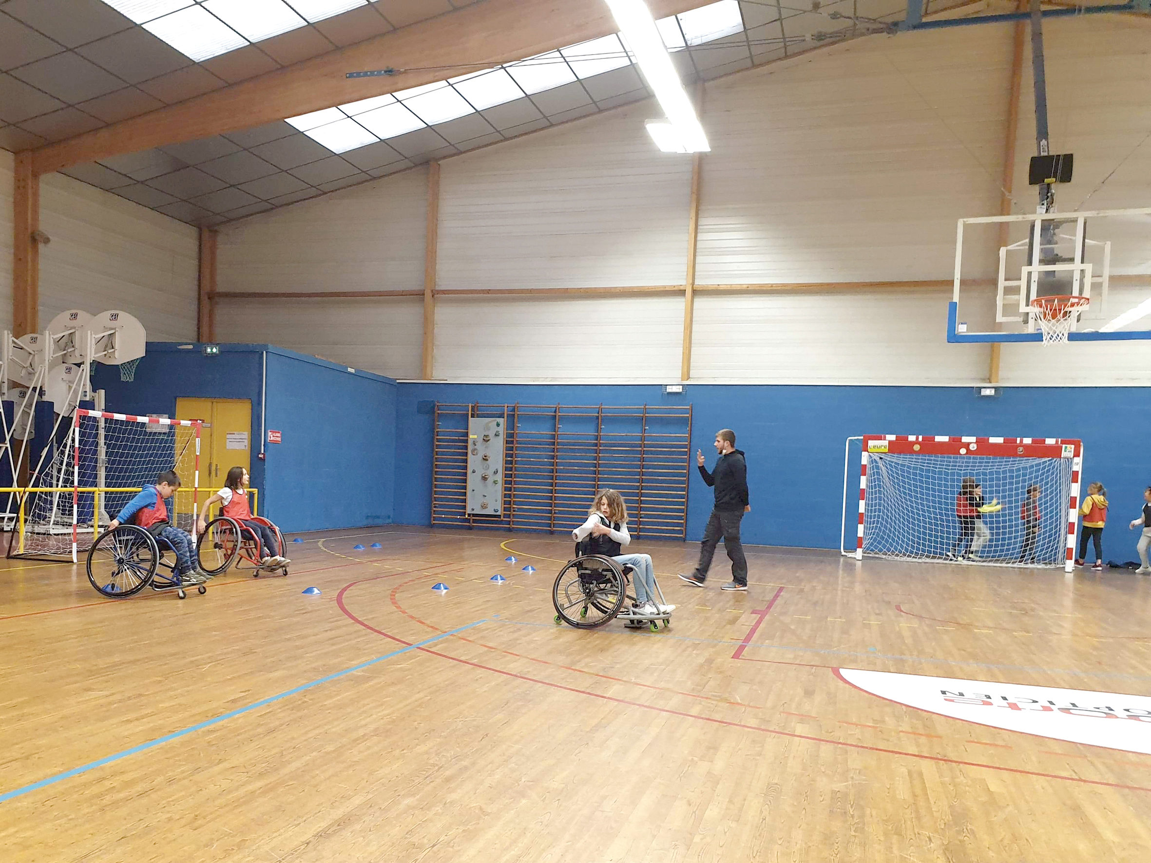 Jouer au handball mais dans un fauteuil roulant, voilà le principe du hand’fauteuil. Et ne vous fiez pas aux apparences, c’est tout aussi fatigant ! Il n’y a qu’à demander aux 14 licenciés du SMV qui pratiquent cette discipline. En novembre, leur section a obtenu le label Norm’Handi, décerné par le Comité Régional Olympique et Sportif. « Cela récompense le travail que nous menons, en partenariat avec l’association AI Norme Handi, en faveur de l’inclusion des personnes en situation de handicap », explique Julien Gambier, manager général du SMV. Dans l’équipe de hand’fauteuil, les valides se mêlent aux personnes à mobilité réduite. « Il n’y a pas de distinctions d’âge, de sexe, l’idée est de favoriser la mixité et de changer le regard sur le handicap ». Première étape : apprendre à utiliser le fauteuil, 3 coups de roues équivalant aux 3 pas traditionnels du hand. « Cette discipline fait travailler davantage le haut du corps », précise M. Gambier. La bonne dynamique de cette section s’inscrit dans le projet Team SMV 2024 dont le but est de réduire les inégalités d’accès au sport. Par ailleurs, le club initie les jeunes de l’école Arc-en-Ciel aux handisports en partenariat avec la ville.
