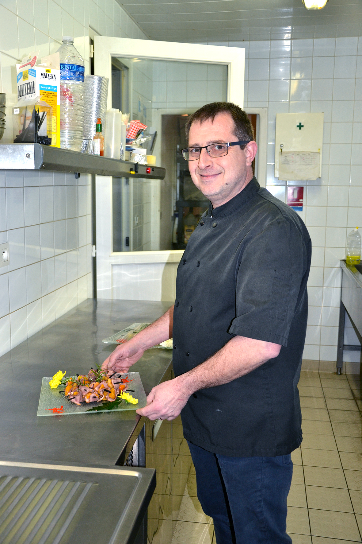 « Il faut du basique, des valeurs sûres comme le foie gras au miel et armagnac. Mais aussi flirter avec l’exotisme ! » Dans son frigo, des produits frais mais pas de bio : « Le coût serait énorme et je me tirerais une balle dans le pied ». Son truc en plus ? Ne rien imposer. « Je m’adapte… à votre goût ! J’ai ainsi confectionné, un jour, un buffet sur le thème de l’Afrique ! »