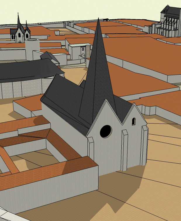 Que subsiste-t-il aujourd’hui de ces monuments disparus? Quelques pierres anonymes et fragments de chapiteaux difficiles à attribuer à l’un ou l’autre des édifices religieux, des tracés d’emprise au sol sur les plans anciens, et quelques gravures où l’œil plissé peut les apercevoir. Mais aucune reconstitution en volume ou élévation n’avait été publiée à ce jour.