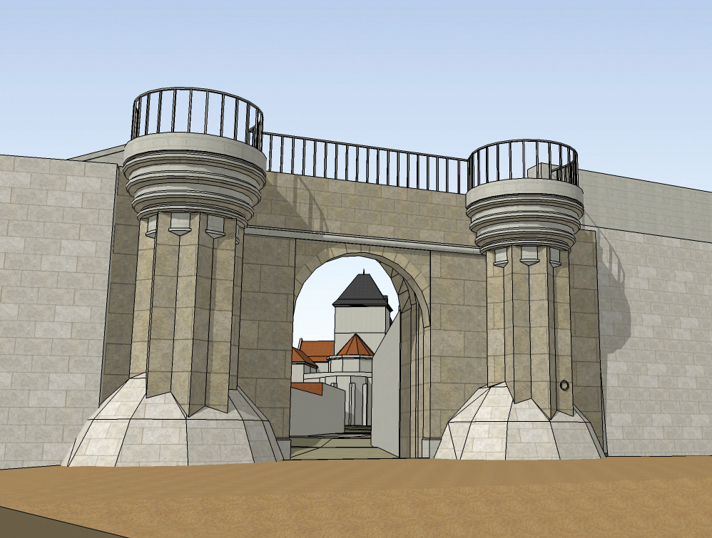 Sur notre reconstitution de la ville fortifiée, on découvre en plus des quatre églises, le vieux pont médiéval, ainsi que les cinq portes de la cité, sans oublier une sixième méconnue : la Fausse Porte, ancienne entrée sud.