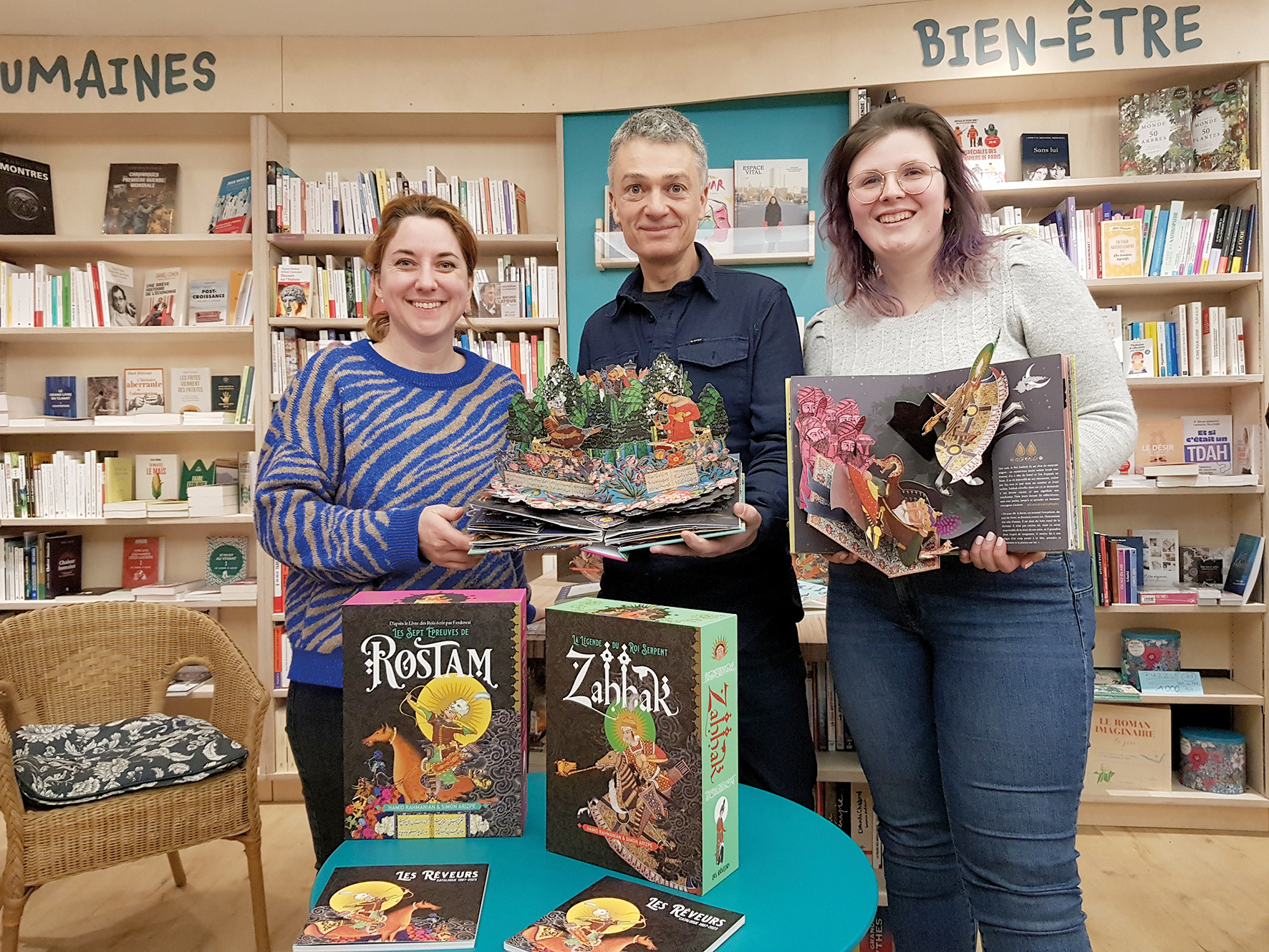 Difficile aujourd’hui de s’aventurer en Iran. C’était sans compter La Compagnie des Livres qui, chaque mois, nous fait découvrir une destination lointaine. « Notre tour du monde dure jusqu’en novembre et compte dix pays avec, à chaque fois, une sélection de livres et un à deux événements en librairie », explique Aude Lemullier, à la tête de La Compagnie des Livres, « nous souhaitons, avant tout, faire découvrir aux Vernonnais des littératures peu connues en France ». Après la Chine, en février, place donc aux lettres persanes. « L’Iran est un pays qui fascine mais sur lequel nous avons beaucoup de préjugés, les livres peuvent donner des clefs de compréhension », ajoute la libraire. En 2 500 ans d’existence, la culture perse aura légué au monde de nombreux chefs d’œuvre. Parmi ceux-là, le Livre des Rois, épopée de plus de 60 000 vers composée en l’an mil par le poète Ferdowsi. Un monument national adapté aujourd’hui… en livres pop-up ! Deux magnifiques ouvrages, « Zahhak » et « Rostam », présentés par Nicolas Lebedel, cofondateur des éditions Les Rêveurs, le 9 mars à La Compagnie des Livres. Mais la librairie s’intéresse aussi aux remous traversés par l’Iran. « Nous aurons la chance de recevoir l’autrice Sorour Kasmaï, laquelle a dirigé le recueil ‘Femmes, Rêves, Liberté ‘, un ensemble de textes très forts sur la condition des femmes iraniennes. » Ce mois perse n’est d’ailleurs pas terminé puisque les libraires célèbreront Norouz, le nouvel an iranien, mercredi 20 mars à 15h avec un atelier créatif de décoration d’œufs. Les 6-9 ans ont, quant à eux, rendez-vous le samedi 23 mars à 11h pour une Heure du Conte en terres iraniennes. « Nous remettons un passeport aux clients qui participent aux animations, chaque destination a son tampon avec, à la clef, des cadeaux. » Le voyage reprend dès avril, direction : la Colombie ! D’ici là, il est toujours temps de se délecter des vers de Ferdowsi, des malices du sage Nasreddine ou de la tragique histoire de Leïli et Majnoun.