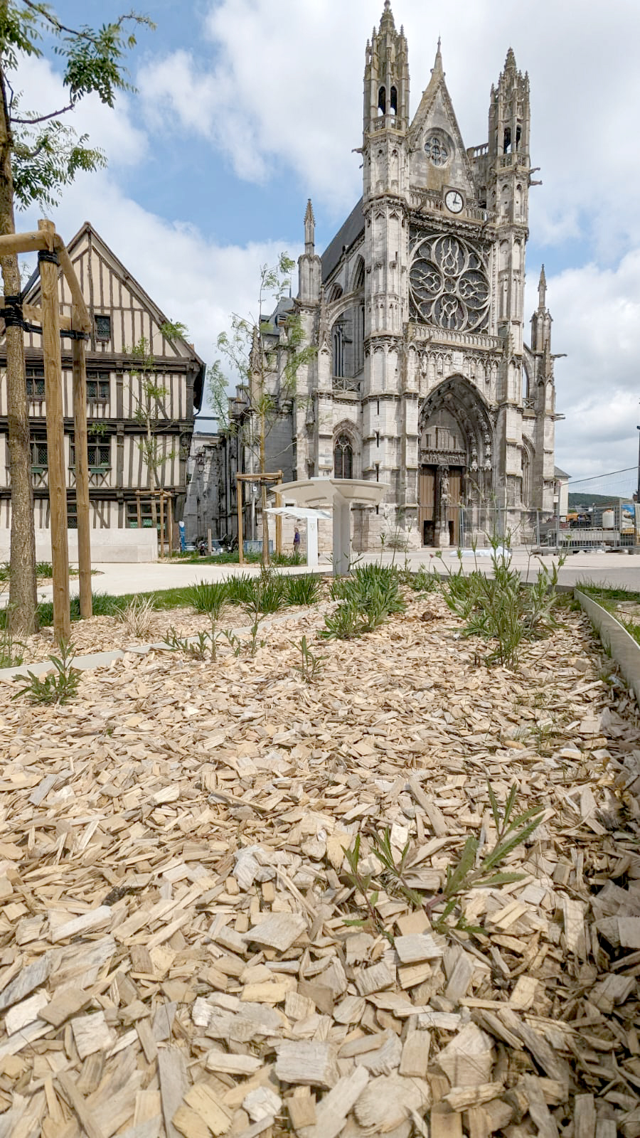 Les espaces verts de la municipalité de Vernon, dans un souci d’économie, pratique massivement le paillage dans ses massifs de fleurs.