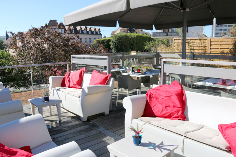 Venez manger en extérieur, sur une terrasse en bois, isolée par des palissades pour plus d’intimité.